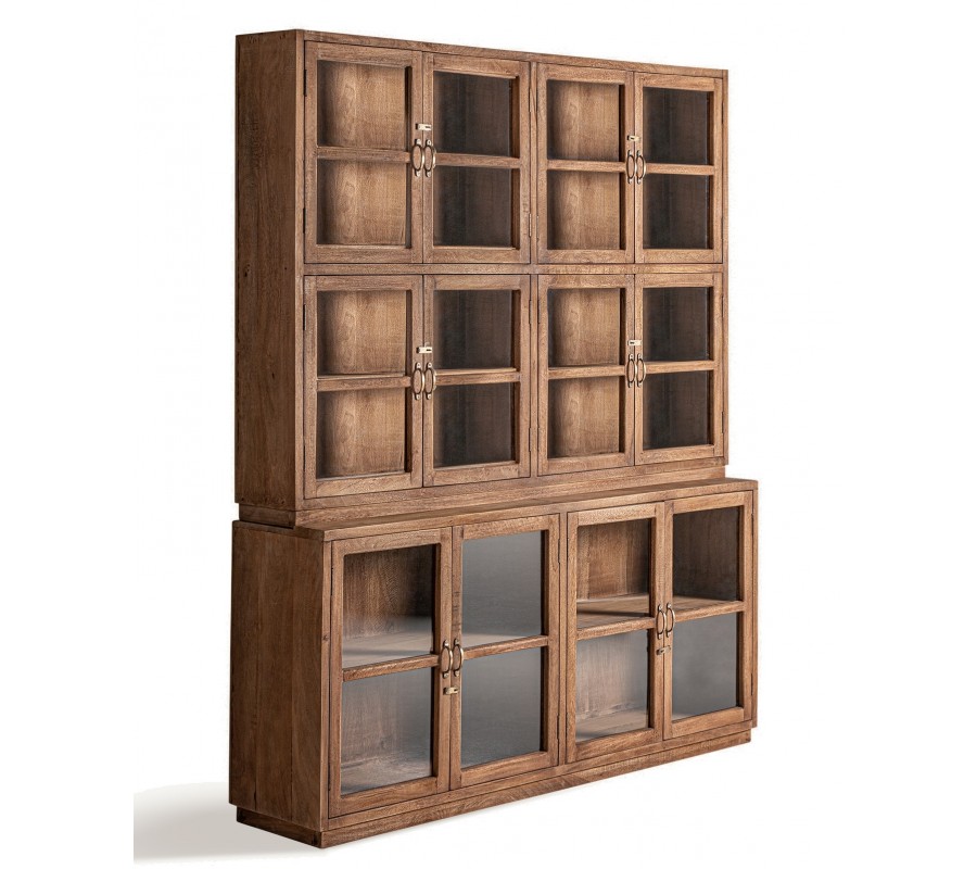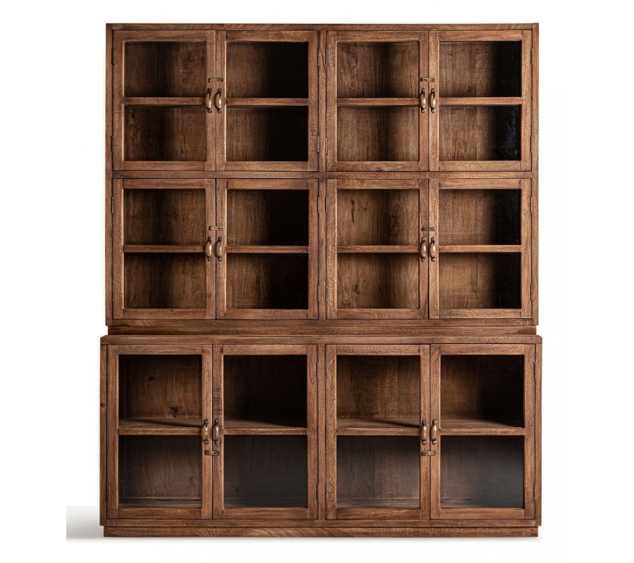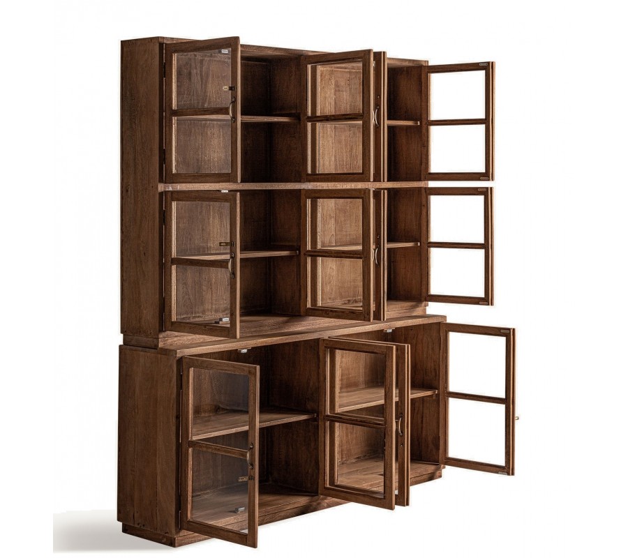 Luxusná koloniálna knižnica Lamenos v obdĺžnikovom tvare zaujme už na prvý pohľad vďaka svojmu pôsobivému dizajnu a kvalitnému spracovaniu z masívneho recyklovaného mangového hnedého dreva. Knižnica pozostáva z dvoch častí, vrchnej a spodnej, pričom horná časť má osem dvierok so sklenenou výplňou, a dolná štyri, celkovo teda šesť samostatných skriniek s vnútornými policami.