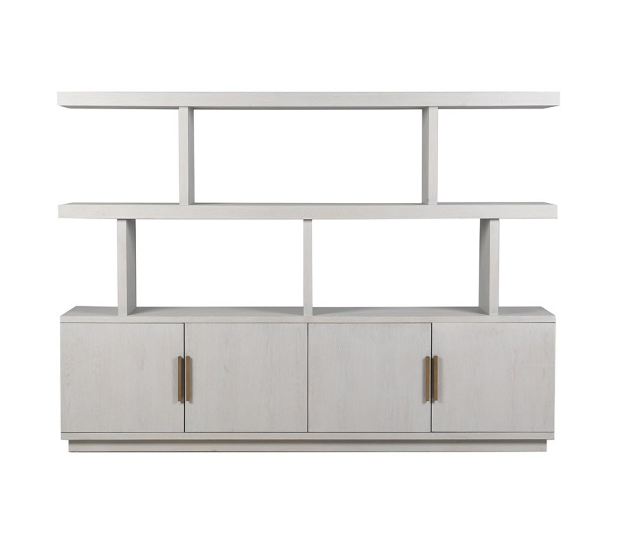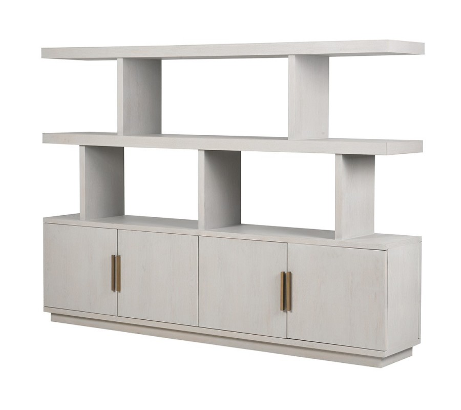 Luxusná knižnica Quadria Blanca v štýle art deco zaujme svojím geometrickým dizajnom, elegantným spracovaním a výnimočným charakterom. Vyrobená je z kombinácie masívneho a dyhovaného dubového dreva, čo jej prepožičiava pevnosť, odolnosť a zároveň sofistikovaný vzhľad. Svetlosivý až biely odtieň dreva pôsobí neutrálne, vzdušne a veľmi luxusne, pričom sa ľahko kombinuje s ďalším zariadením interiéru.