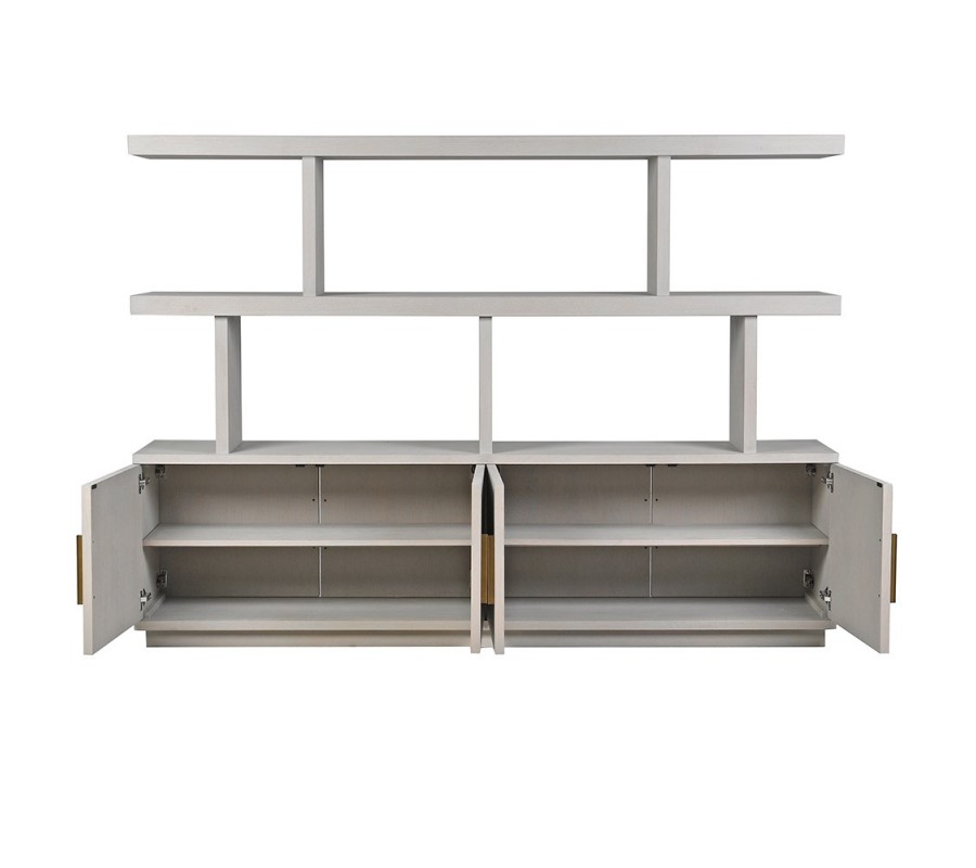 Art deco moderná sivá knižnica Quadria Blanca z dubového dreva so štyrmi dvierkami a dvomi policami 220 cm