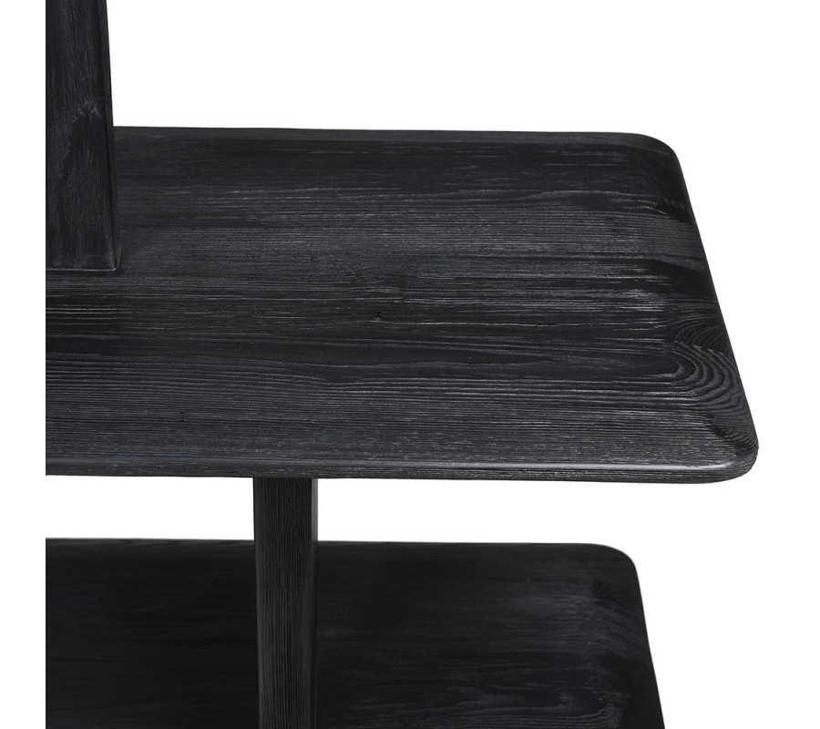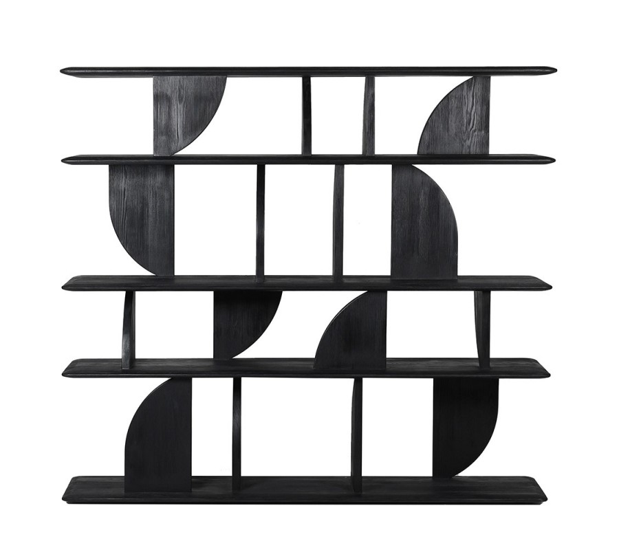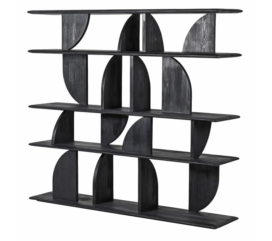 Luxusný regál Obsidian v art deco štýle je jedinečným dizajnovým prvkom, ktorý spája funkčnosť s umeleckou hodnotou. Je vyrobený z masívneho recyklovaného dreva v čiernej farbe, čím získava ekologický rozmer aj autentický charakter. Povrch zvýrazňuje štruktúru letokruhov, ktorá dodáva každému kusu originálny vzhľad.