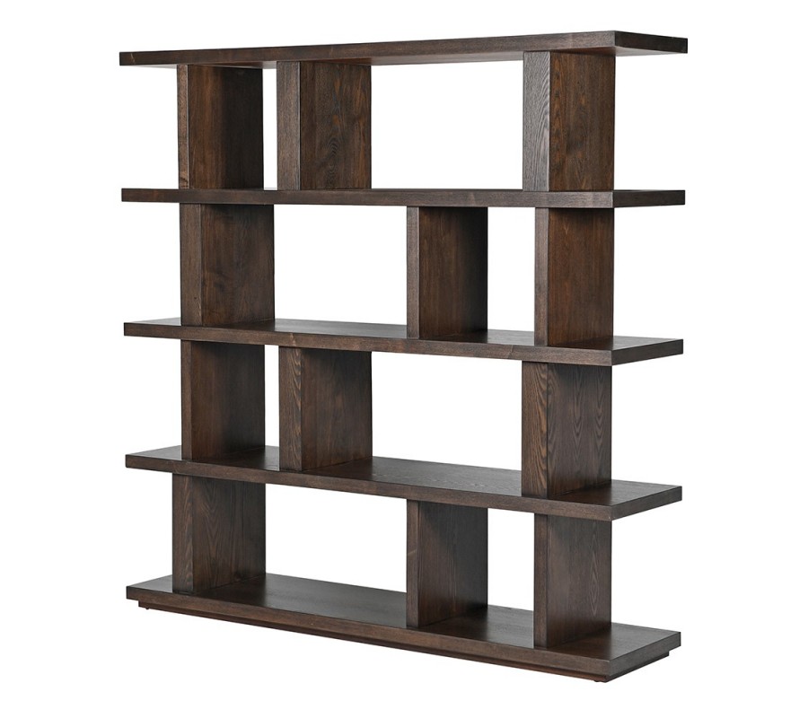 Luxusná drevená hnedá dizajnová knižnica Structure s piatimi policami so striedaním tenkých a hrubých predelov 166 cm