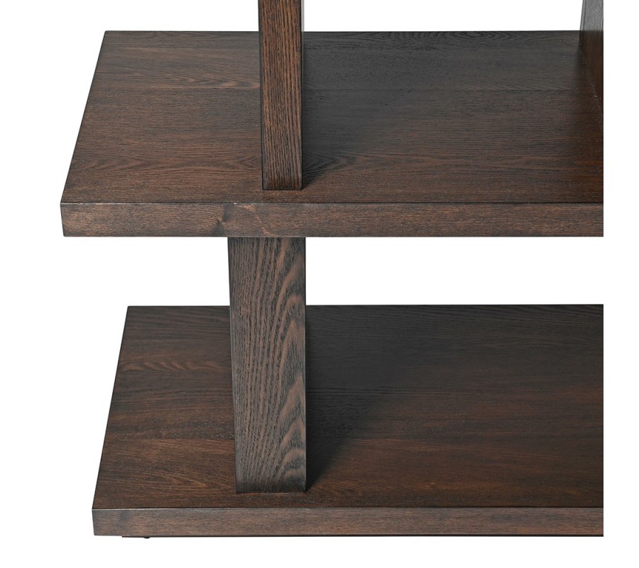 Knižnica Structure je pôsobivý dizajnový prvok z kolekcie luxusného nábytku, ktorý spája architektonickú geometriu s teplým, prirodzeným charakterom dreva. Je vyrobená z kvalitnej drevenej dyhy v tmavohnedom odtieni, ktorý necháva vyniknúť jemnú štruktúru a kresbu povrchu a dodáva celku elegantne zamatový vzhľad.