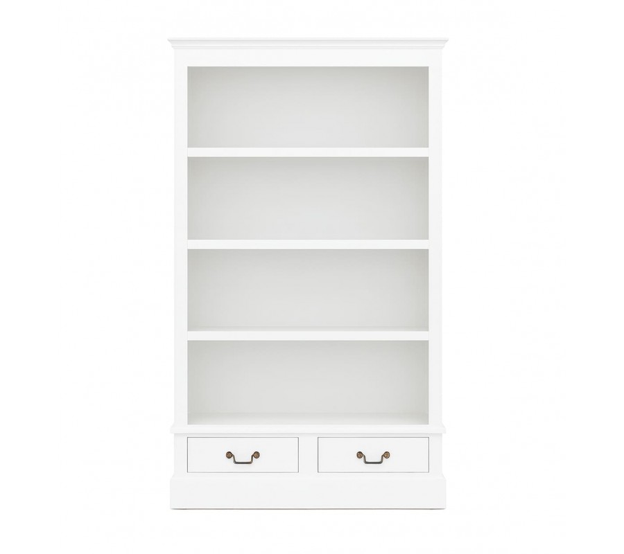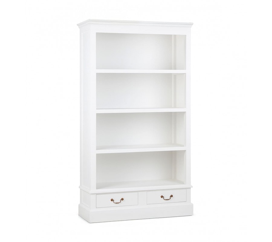 Luxusná klasická biela knižnica Donelly so štyrmi policami a dvomi zásuvkami z masívneho mahagónového dreva 180 cm