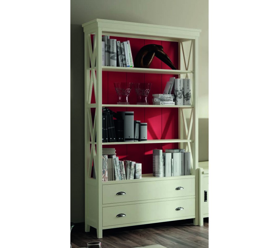 Masívna luxusná knižnica Verona s dvomi zásuvkami a štyrmi poličkami 200cm