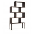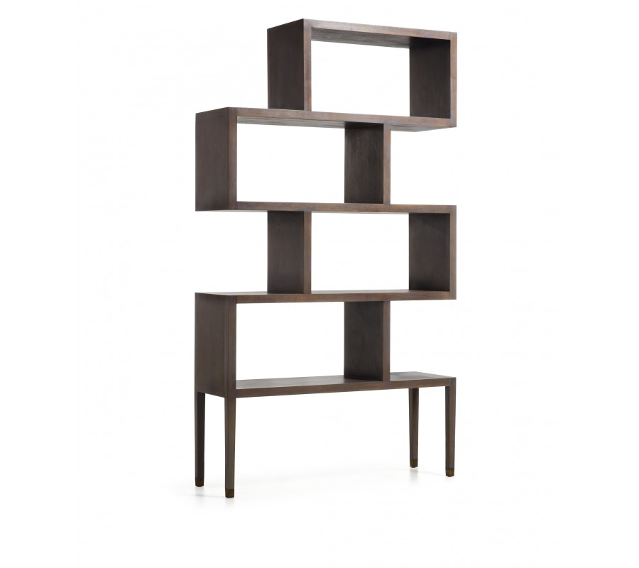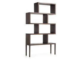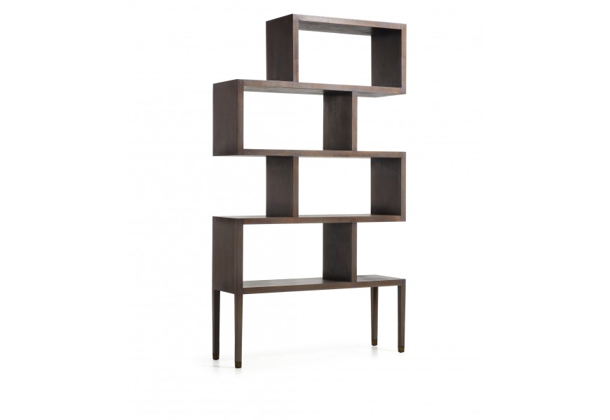 Luxusná dizajnová knižnica z kolekcie nábytku SPARTAN je vyrobená z masívneho dreva MINDI, hnedo-modro-čierneho výrazu, podobného drevu WENGE. Štýl kolekcie odrzkadluje sedemdesiate roky. Tento nábytok v RETRO štýle má úchyty z tvrdej kože hnedej farby.