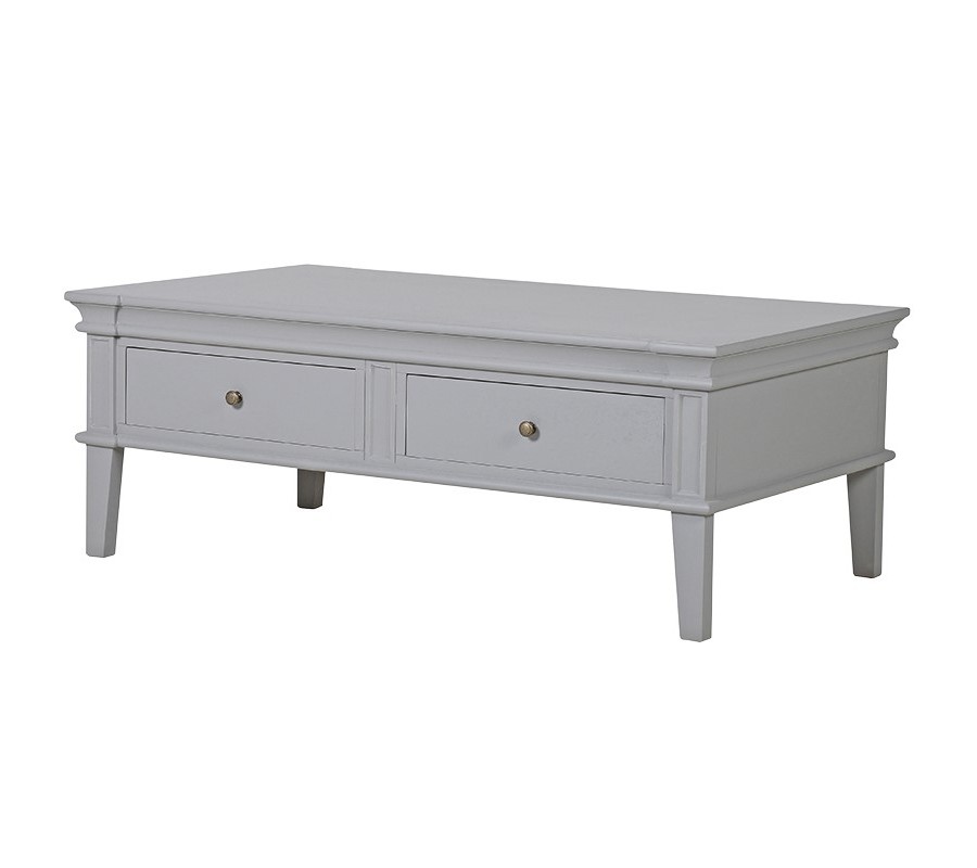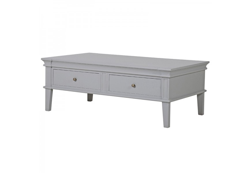 Jedinečný konferenčný stolík Riva Gris Vám prinášame i v sivej farbe. Nezameniteľné línie provensálskeho štýlu dokazujú, že nielen biela farba dá vyniknúť ich jemnosti a tak poskytujú možnosť využitia i pre milovníkov tmavších tónov v interiérovom dizajne. Zaručene oceníte i úložný priestor, ktorý ukrýva v štyroch priestranných zásuvkách.