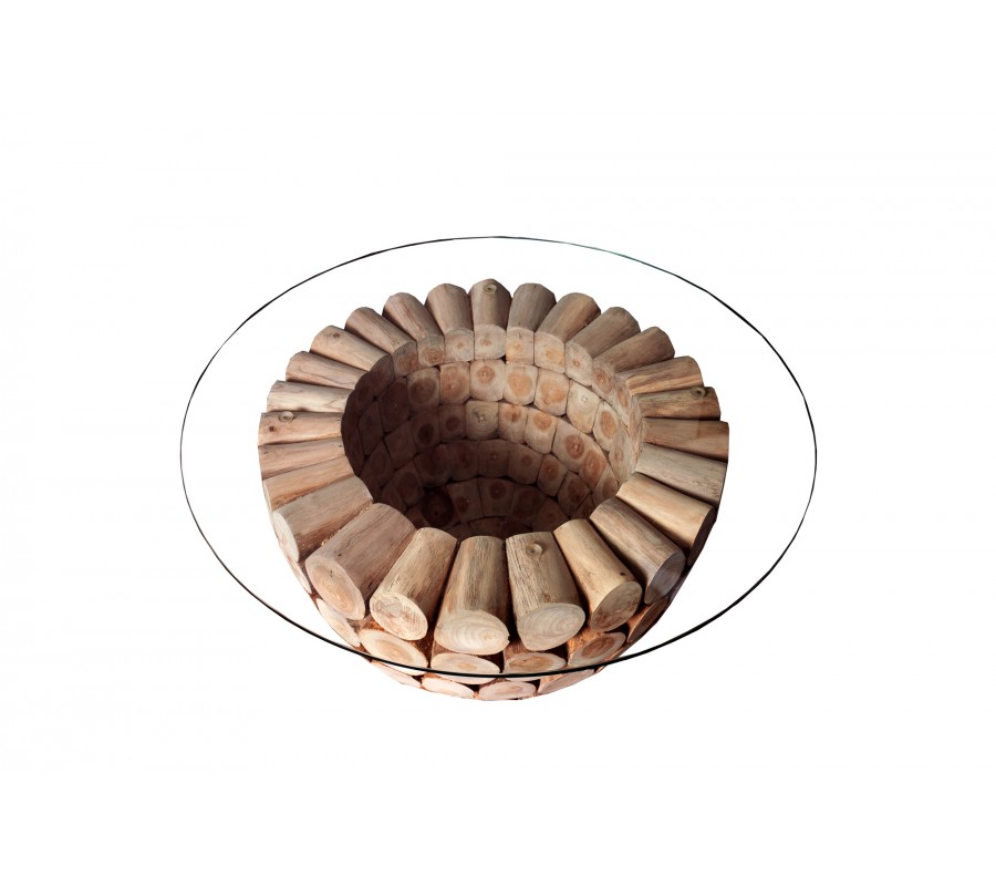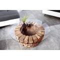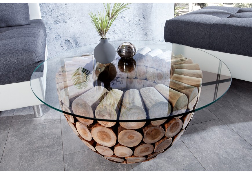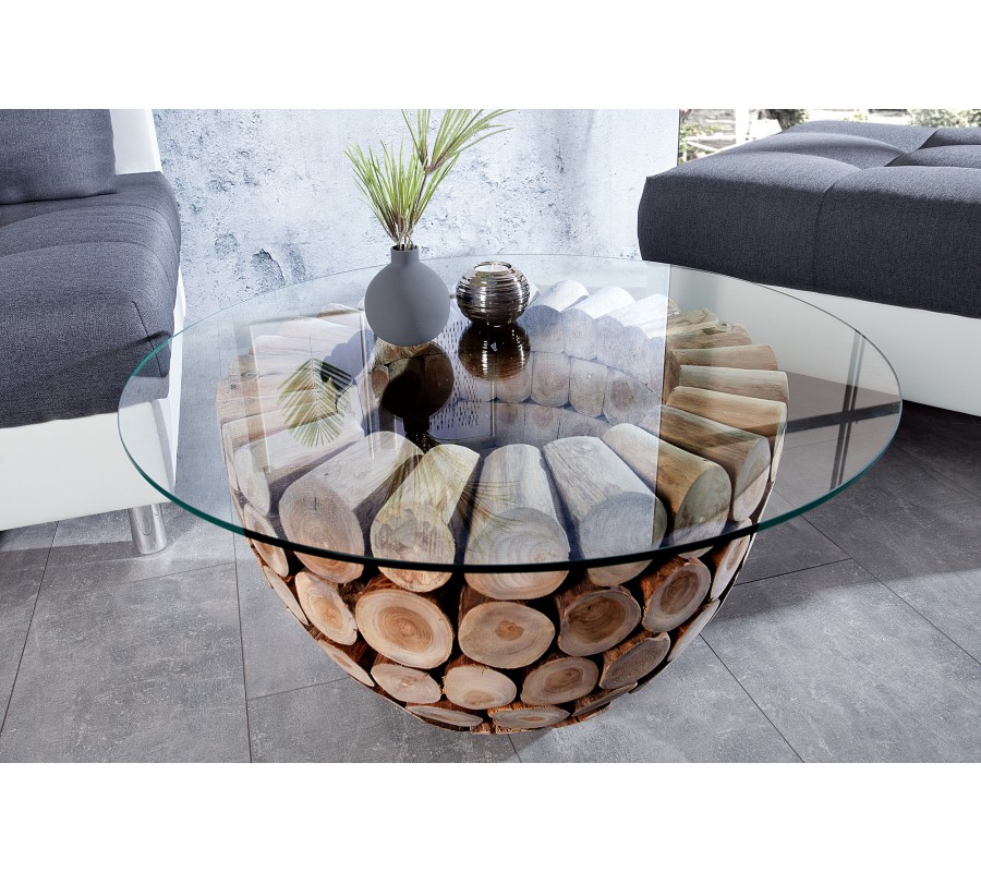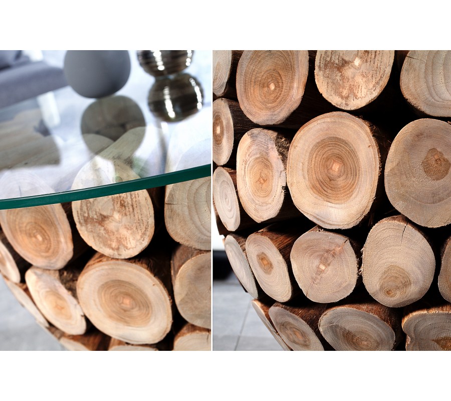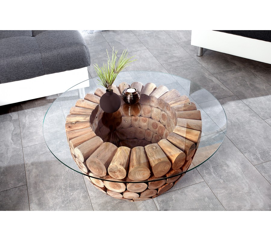 Dizajnový okrúhly konferenčný stolík Pure Nature je jedinečným a originálnym kusom nábytku, ktorý si svoje miesto nájde v každom modernom a dizajnovom interiéri. Stolík okrúhleho tvaru v sebe unikátne prepája dva kontrastné materiály akými je masívne drevo a hladké bezpečnostné sklo. Robustný podstavec vyrobený z kusov teakového dreva zaručene pritiahne všetky pohľady a zároveň do miestnosti vnesie nádych prírody.