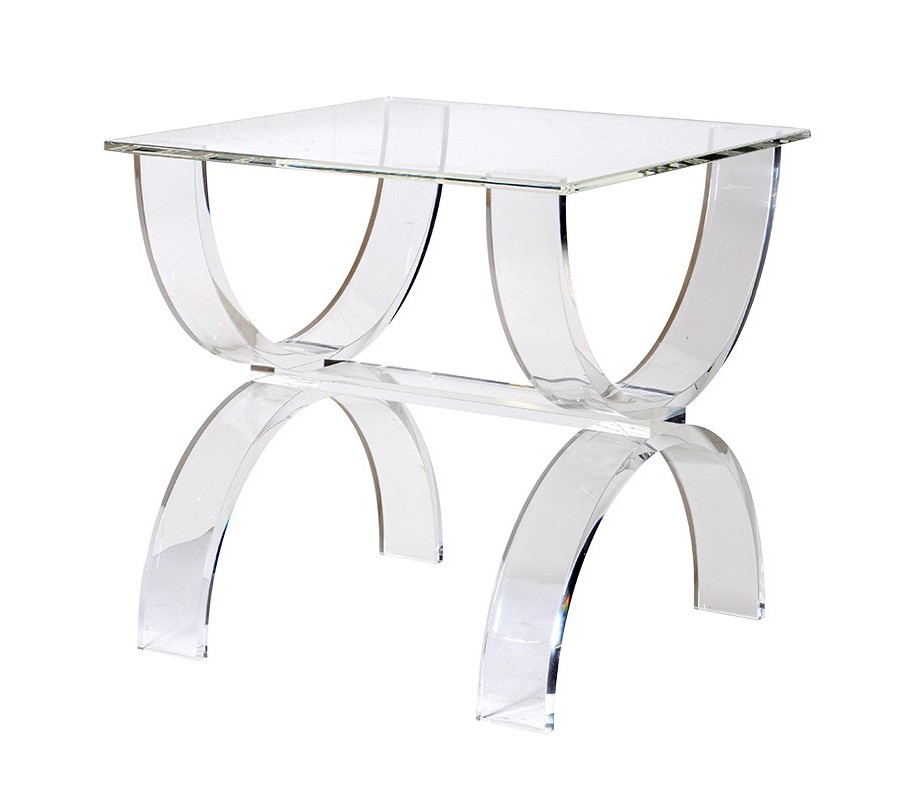 Moderný luxusný konferenčný stolík Eglantine je vyrobený zo sklenenej konštrukcie. Sklenená konštrukcia má zaujímavý tvar. Hodí sa do moderne, luxusne zariadených interiérov. Je sklenený a pôsobí vzdušne, opticky zväčšuje priestor. Dominantným sú poloblúky po jeho bokoch, typické pre art-deco štýl. Hodí sa aj do miestnosti s oblúkovytími klembami a doplnili by sme ho so sedačkou s opierkami v tvare oblúkov. Vďaka oblúkom sa hodí do žensky ladených interiérov. Celkovým dojmom pôsobí elegantne, štýlovo, nadčasovo a rozsvetlí, obohatí Váš interiér.