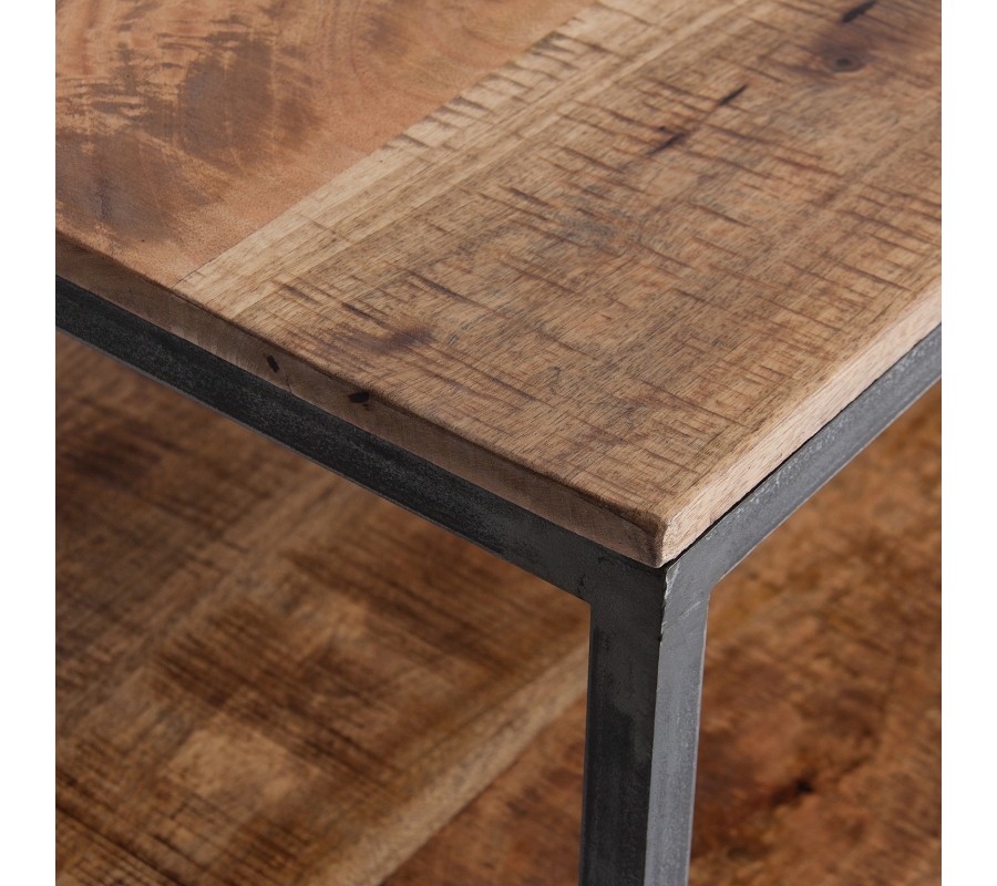 Industriálny dizajnový konferenčný stolík Aminte je vyrobený z prírodného dreveného masívu mango. Spodok tvoria štyri kovové nohy a odkladací priestor. Stolík je všestranný a zmestí sa aj do menších priestorov. Dobre sa kombinuje s inými prvkami v industriálnom štýle, poprípade v tmavších farbách. Svoje využitie si nájde pri posedeniach pri káve, poprípade aj ako stolík pred obývačkovú zostavu, kde dokonalo poslúži na odkladanie vecí ku televízii alebo menších pokrmov. Hodí sa do interiérov zladených v industriálnom nádychu. Celkovo pôsobí elegantne a doplní Vaše vnútorné priestory.