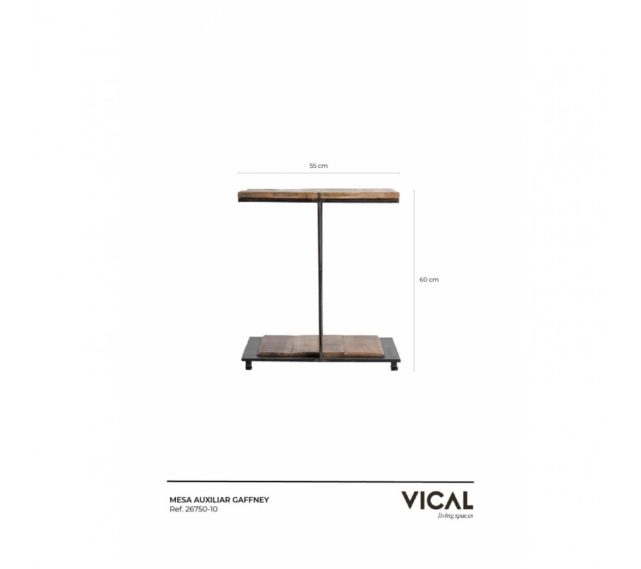 Industriálny dizajnový príručný stolík Aminte mango z masívu 55 cm