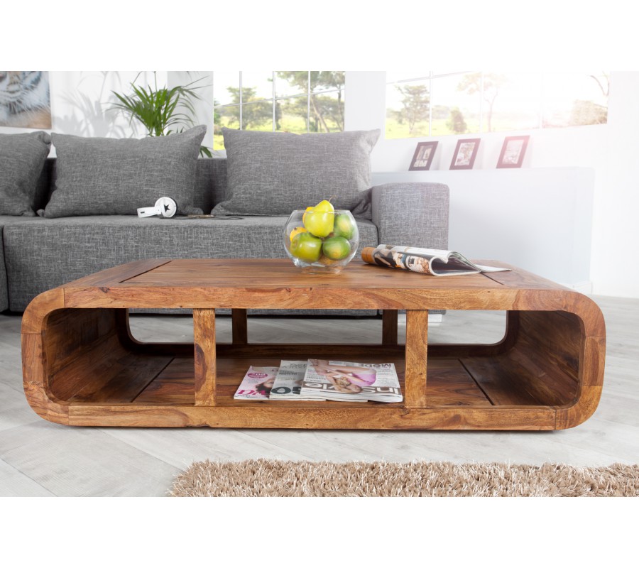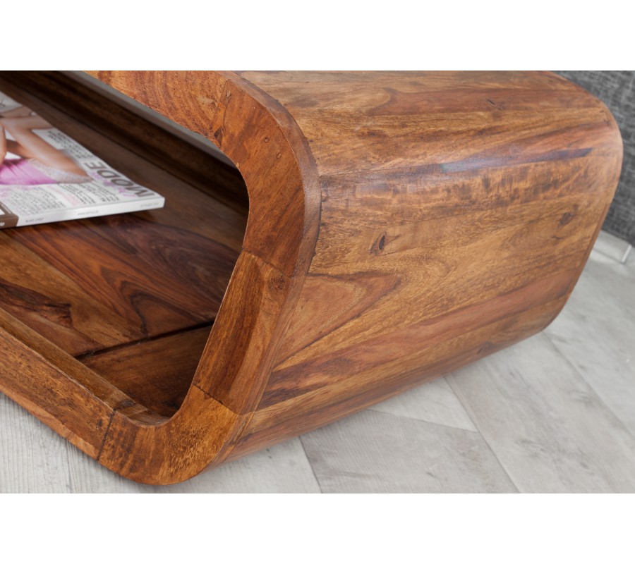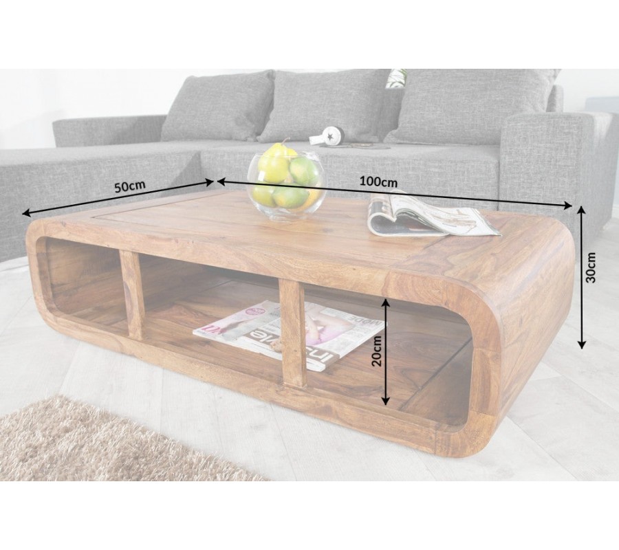 Luxusný dizajnový konferenčný stolík Zakrivený II vyzerá ako keby bol vyrezaný z jediného kmeňa stromu. Rustikálny, exkluzívny a mnoho iných štýlov prezentuje tento krásny konferenčný stolík, ktorý možno použiť aj ako televízny stôl. Nádherné textúry a prírodné črty vyžarujú stredomorskú atmosféru. Rozmery (pribl.): 100 cm x 30 cm x 50 cm (ŠxVxH) Priehradky: 28 cm x 20 cm x 45 cm (ŠxVxH) Farba: prírodný Materiál: masívne drevo, Sheesham Vďaka ručnej práci a použitiu prírodného materiálu môžu byť viditeľné farebné odchýlky alebo nerovnosti.