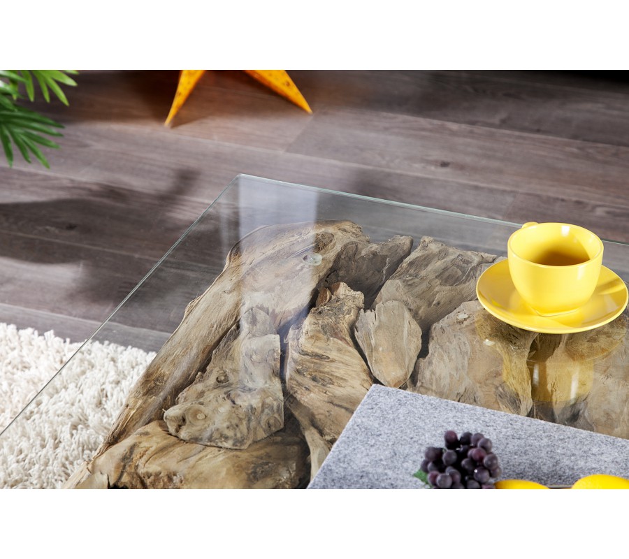 Štýlový konferenčný stolík z masívu teakového dreva je elegantným doplnkom k sedačke do obývacej izby. Jedinečné prírodné spracovanie vnáša do interiéru nepostrádateľný nádych voľnosti a osobitosti. Vrchná doska je vyrobená z tvrdeného 8mm hrubého skla, ktoré zaručuje dlhoročnú výdrž. Štýlovým doplnkom ku stolíku je luxusné zrkadlo Riverside, ktoré je taktiež spracované z masívneho teakového dreva v rovnakom štýle.