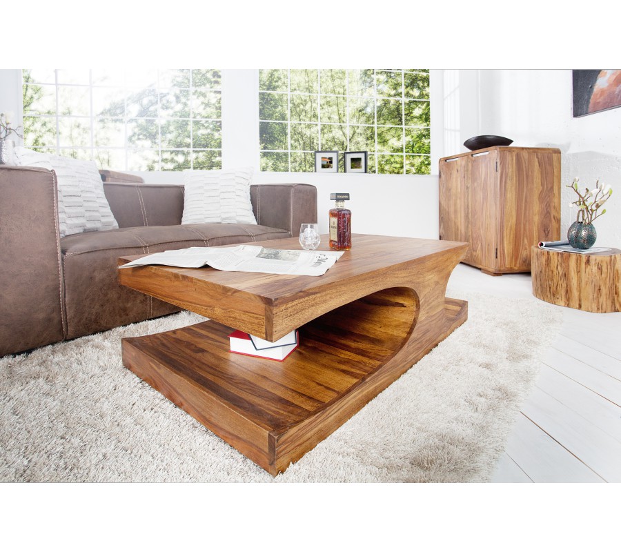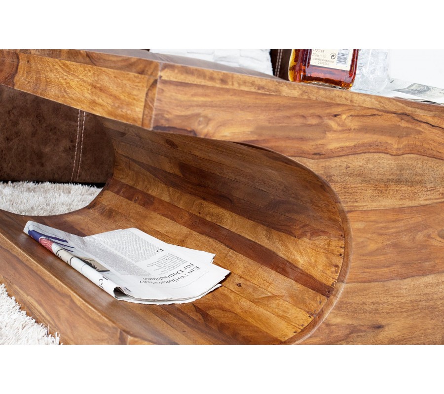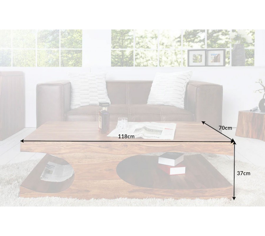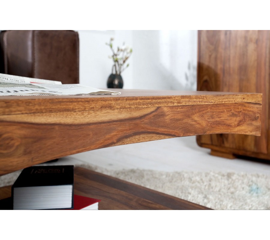 Štýlový konferenčný stolík Terra 120cm palisander zaujme svojím mohutným telom zaujímavých tvarov, ktoré predstavujú originálny úložný priestor. Je vhodný do moderného i do rustikálneho priestoru, ktorý potrebuje oživenie v podobe masívneho dreva. Ručná práca robí každý kúsok originálom. Farba: prírodná, materiál: masívne drevo palisander.