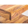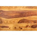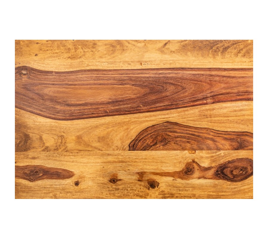 Konferenčný stolík Giant v etno štýle zaujme na prvý pohľad svojím masívnym tvarom, štvorcovým pôdorysom a výraznou štruktúrou pravého sheesham dreva s lakovaným povrchom. Teplý medovo hnedý odtieň a kontrastná kresba letokruhov zvýrazňujú prirodzený charakter dreva a robia z každého kusu jedinečný originál.