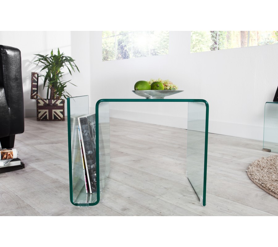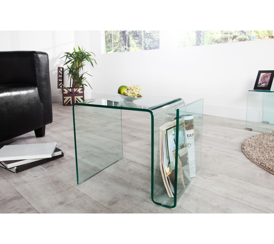 Stolík má praktickú priehradku na časopisy, knihy či drobnosti, ktorá je diskrétne začlenená do konštrukcie a nenarúša jeho priezračný charakter. Hrubé bezpečnostné sklo zabezpečuje stabilitu a odolnosť pri každodennom používaní.