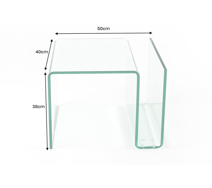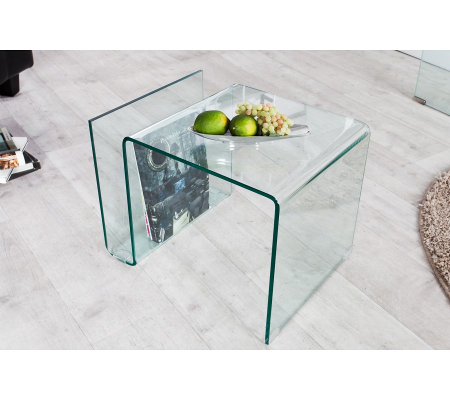 Konferenčný stolík Ghost predstavuje minimalistický dizajn v čistom sklenenom prevedení, ktorý pôsobí vzdušne a ľahko zapadne do moderného interiéru. Je vyrobený z jedného kusu ohýbaného číreho skla so zaoblenými hranami, čo mu dodáva elegantný vzhľad a zároveň eliminuje ostré rohy.