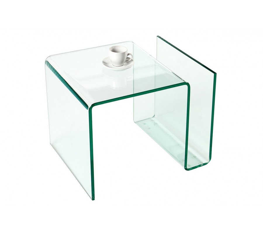 Dizajnový moderný sklenený štvorcový konferenčný stolík Ghost s priehradkou s oblými hranami 50 cm