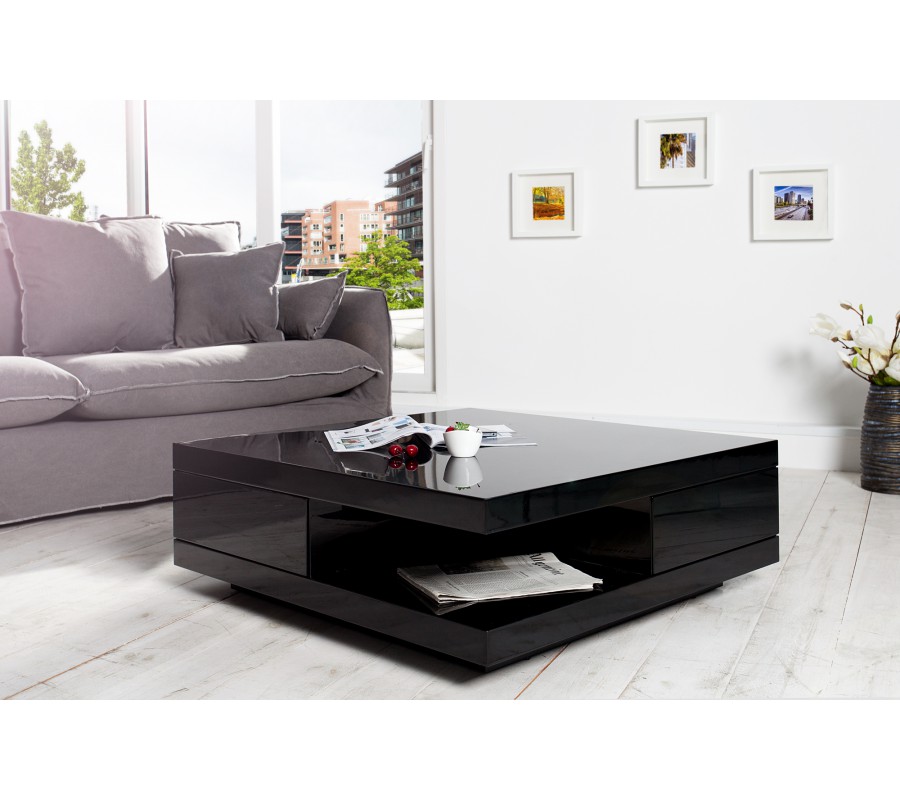 Luxusný jedinečný konferenčný stolík Function čierny vo vysokom lesku so svojím exkluzívným moderným a funkčným dizajnom sa stane vrcholom vo Vašej obývačke! Rozmery: 70 cm x 30 cm x 70 cm (ŠxVxH) zásuvky: 30 cm x 8 cm x 27 cm (ŠxVxH) Materiál: MDF, lakované