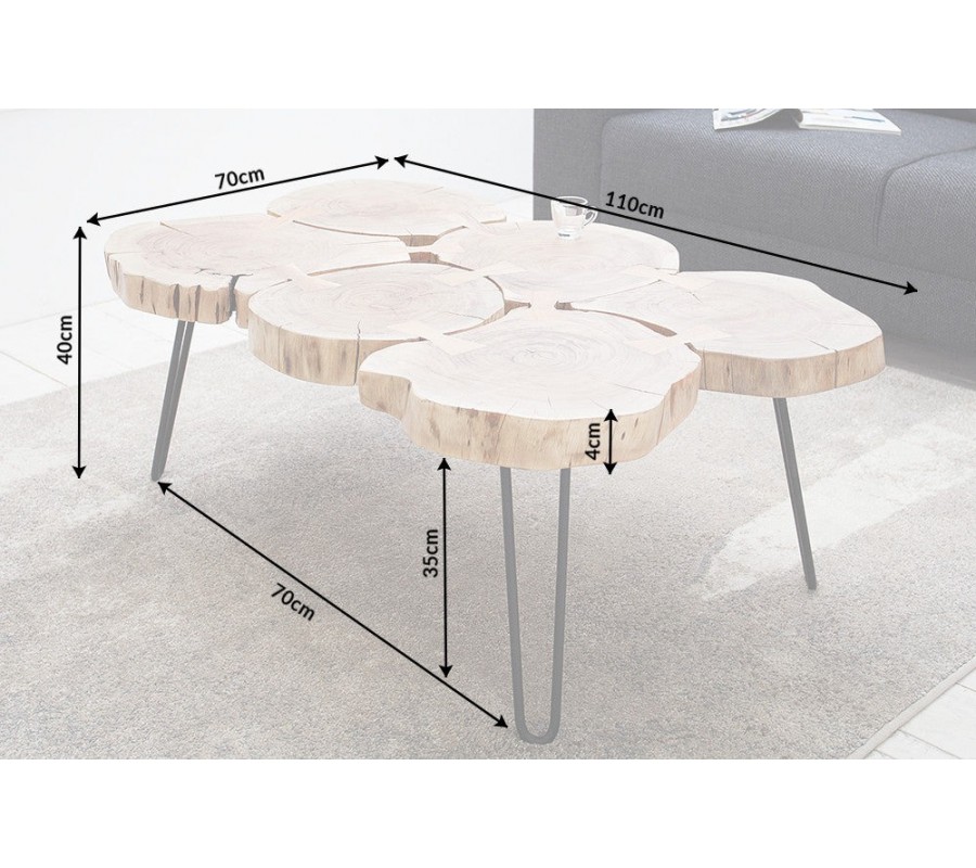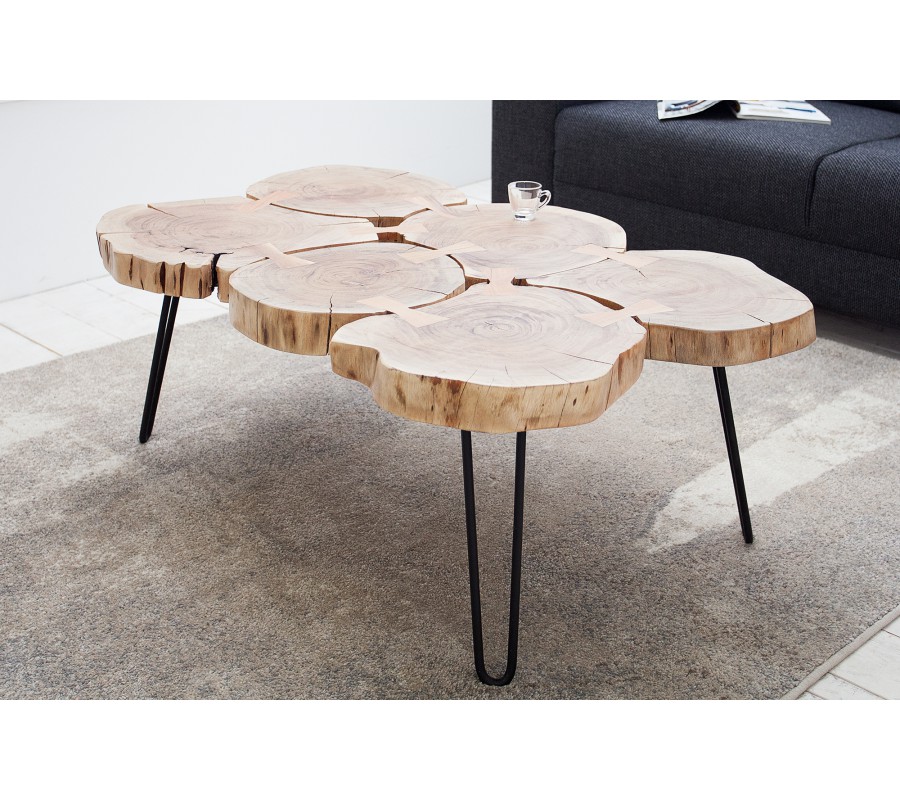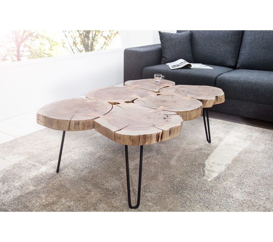 Jedinečný štýlový konferenčný stolík Terra II 115 cm akácia zaujme na prvý pohľad. Je vyrobený z dielcov dreva akácia vytvárajúce dosku stolíka hrúbky 60mm. Povrch dreva je voskovaný. Je uložený na kovových nohách. Farba-prírodné. Vďaka ručnej výrobe je každý stolík originálom.