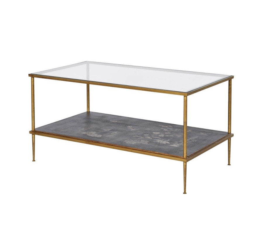 Dizajnový konferenčný stolík Gold Leaf je zaujímavým kúskom, ktorý sa bude skvelo vynímať najmä v art-deco ladených priestoroch. Kovová konštrukcia nôh sa nesie v luxusnej zlatej farbe. Stolík disponuje dvomi doskami- vrchná zo skla a spodná, ktorú možno využiť ako poličku a odkladací priestor na rôzne predmety, je vyzdobená prírodnými florálnymi obrazmi vo vintage štýle. Stolík Gold Leaf vynikne najmä v kombinácii s kovovými doplnkami a v miestnostiach ladených v tmavších farbách.