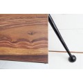 Konferenčný stolík Duvan zaujme na prvý pohľad svojím moderným dizajnom s oblými hranami a originálnou konštrukciou. Je vyrobený z masívneho sheeshamového dreva, ktoré sa vyznačuje výraznou kresbou letokruhov a teplým hnedým odtieňom, dodávajúcim každému kusu nábytku autentický a jedinečný vzhľad.
