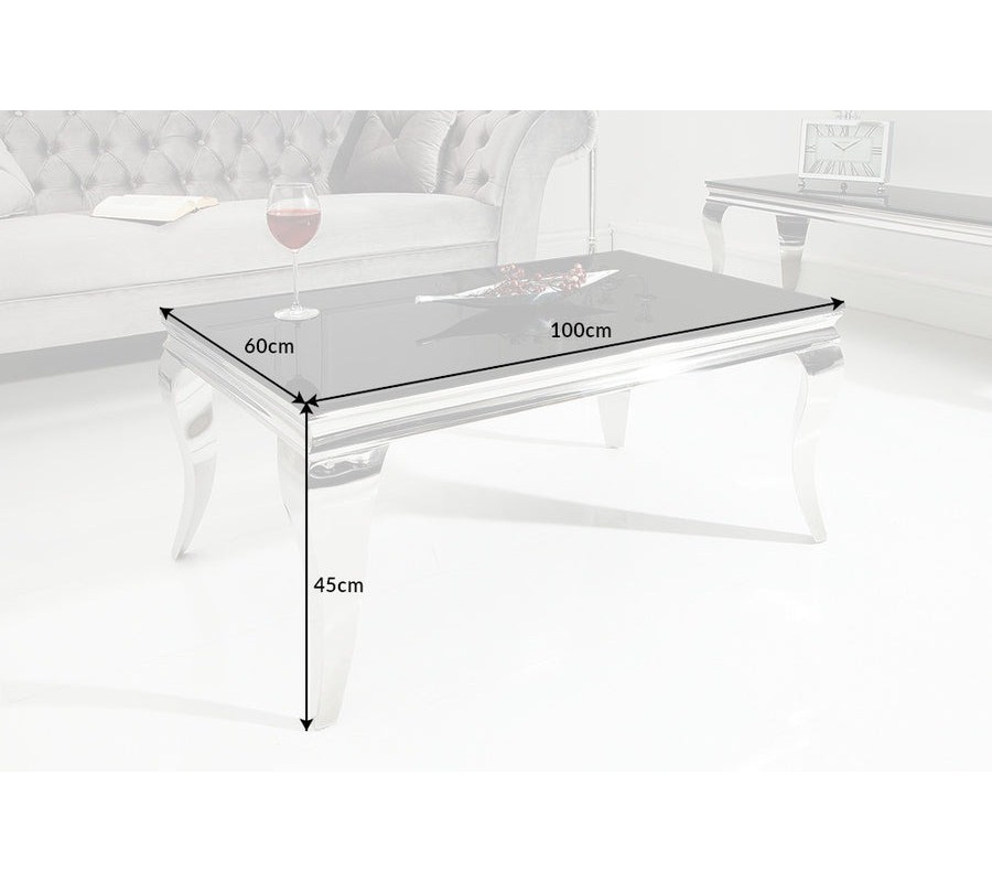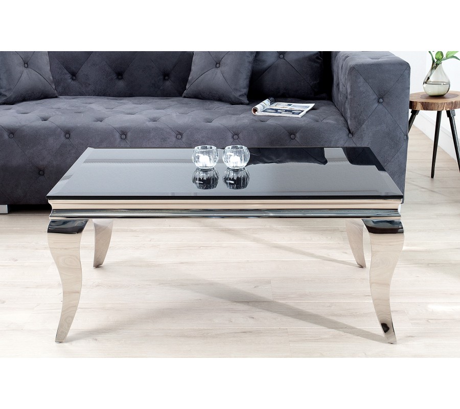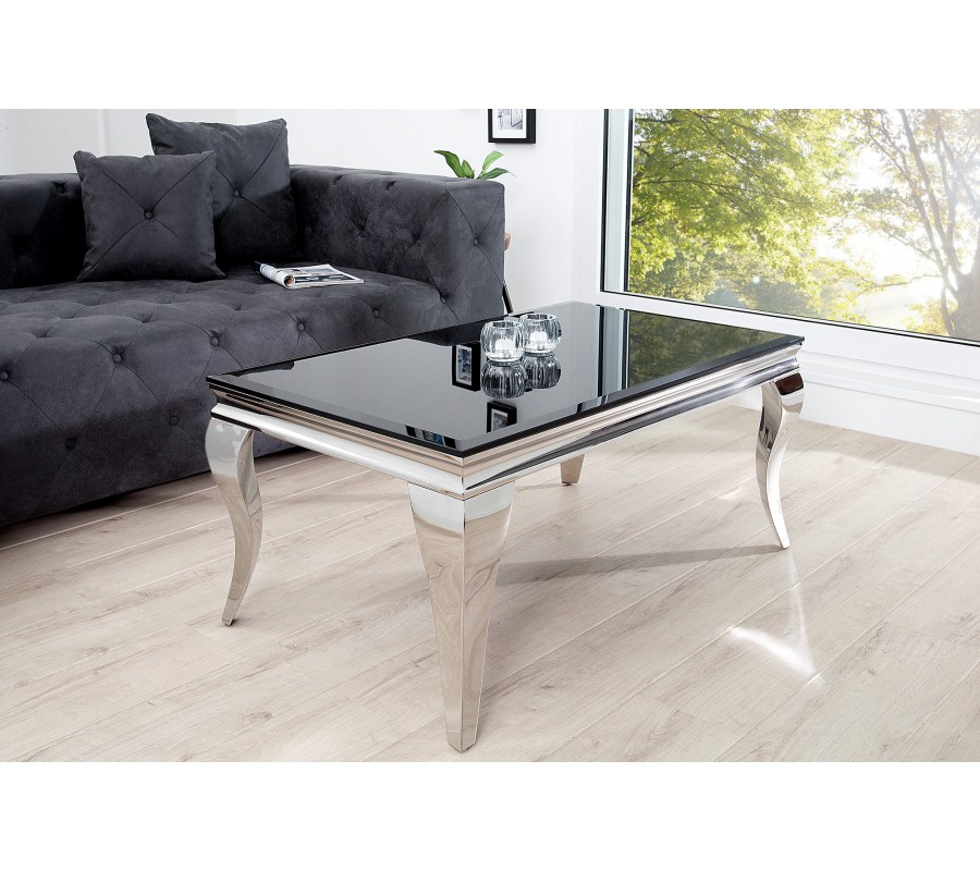 Zámocký glamour obdĺžnikový konferenčný stolík Modern Barock s čiernou sklenenou doskou a striebornými lesklými nožičkami 100 cm
