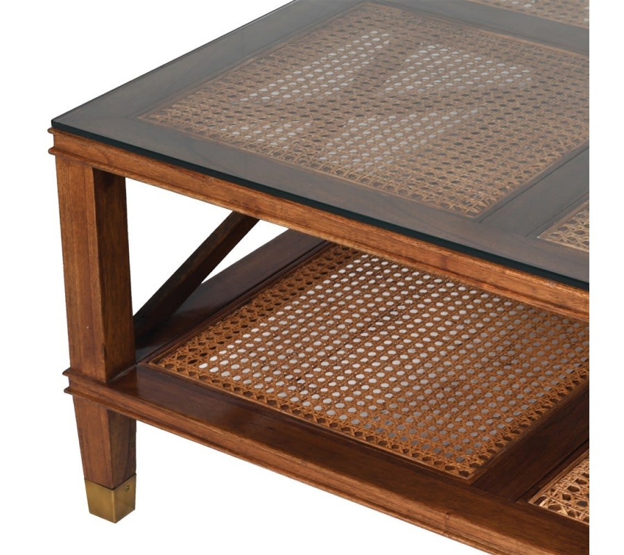 Luxusný konferenčný stolík Dark Rich je štýlovým kúskom vyrobený z kombinácie masívneho dreva a MDF. Nesie sa v prírodnej hnedej farbe, ktorú dopĺňa zaujímavá kresba dreva umocňujúca naturálny nádych. Zaujímavý je taktiež ozdobným výpletom pod sklenenou doskou a včasti odkladacieho priestoru. Nožičky sú zdobené zlatými prvkami, ktoré dopĺňajú celkový dizajn stolíka. Konštrukcia pripomínajúca pletený vzor pôsobí originálne a zároveň nadčasovo. Povrchová doska je z priehľadného skla, takže je stolík aj praktický na údržbu. Skvelo zapadne do koloniálne či vidiecky ladených priestorov v kombinácii s masívnym nábytkom a zlatými doplnkami či živou zeleňou. Oživte svoju obývačku stolíkom Dark Rich aj vy!