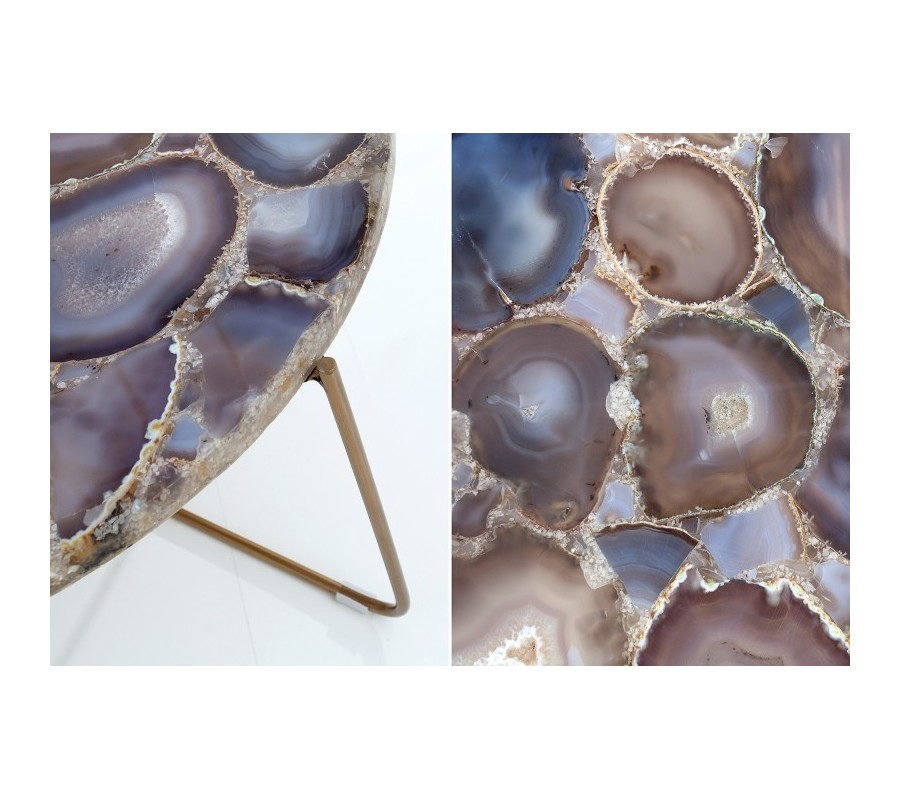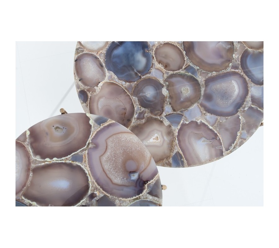 Luxusný konferenčný stolík z kolekcie Jaspe sa skvelo hodí do moderne zariadených obývačiek. Ručne leštená achátová vrchná doska vytvára pri každom kuse jedinečnú štruktúru, ktorá v kombinácii s kovovým rámom tvorí nepriehľadnuteľný kus nábytku vo vašej domácnosti. Materiál: kov, achát