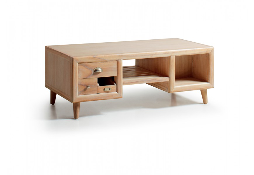 Štýlový luxusný konferenčný stolík s odkladacím priestorom z kolekcie BROMO. Kolekcia nábytku BROMO predstavuje retro štýl z koloniálneho masívneho dreva MINDI, nožičky nábytku pripomínajúce 60 roky so štýlovými úchytmi. Autentické otváranie dvierok a šuplíkov. Vhodný do kombinácie s farebnými stenami, alebo tapetami so vzormi.