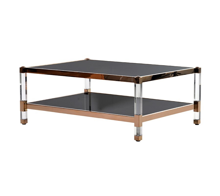 Nechajte sa očariť týmto moderným a jedinečným konferenčným stolíkom z kolekcie Aurora. Príkladný predstaviteľ skleneného nábytku Vám poskytne dostatok odkladacieho priestoru a zároveň príjemne otvorí a rozžiari interiér, do ktorého ho umiestnite. Rovnako ako i iné produkty v tomto čím ďalej populárnejšom štýle Vás poteší svojimi strohými no zato distingvovanými a vysoko minimalistickými líniami, ktoré v kombinácii s medenými prvkymi a čiernymi prvkami pôsobia veľmi vkusne a nadčasovo.