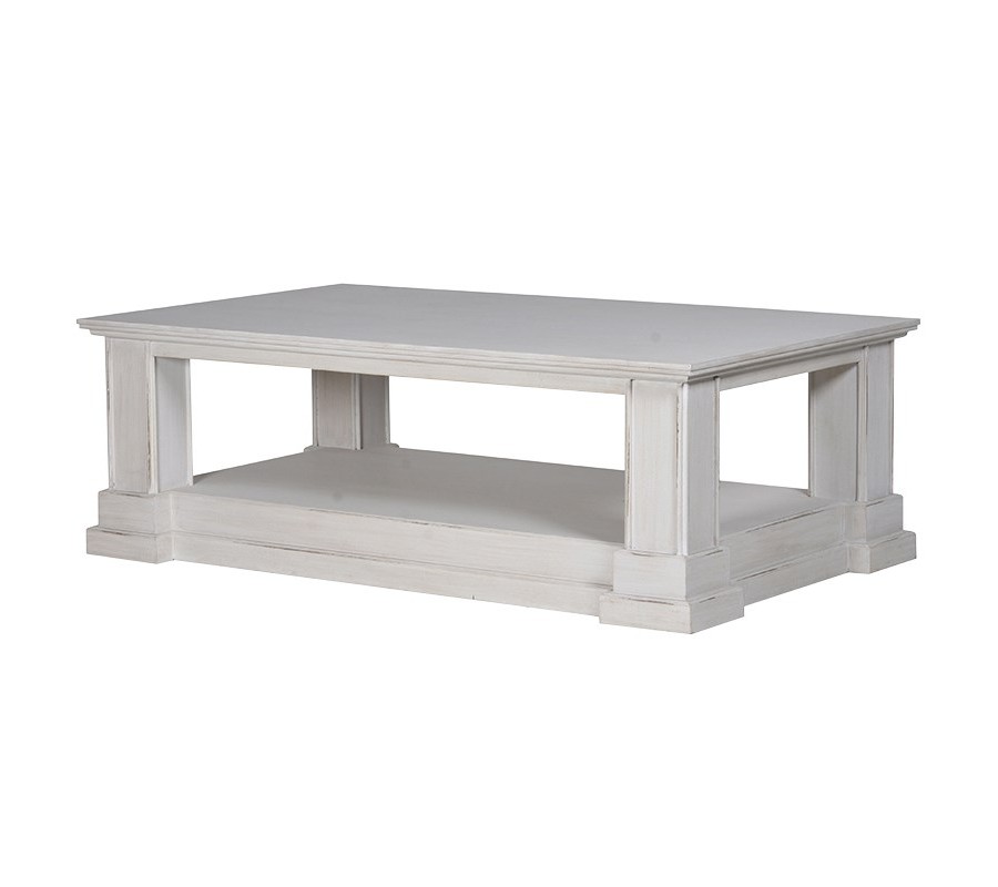Luxusný vidiecky konferenčný stolík Chloé v svetlej sivej farbe s vintage efektom vymytého náteru 150 cm