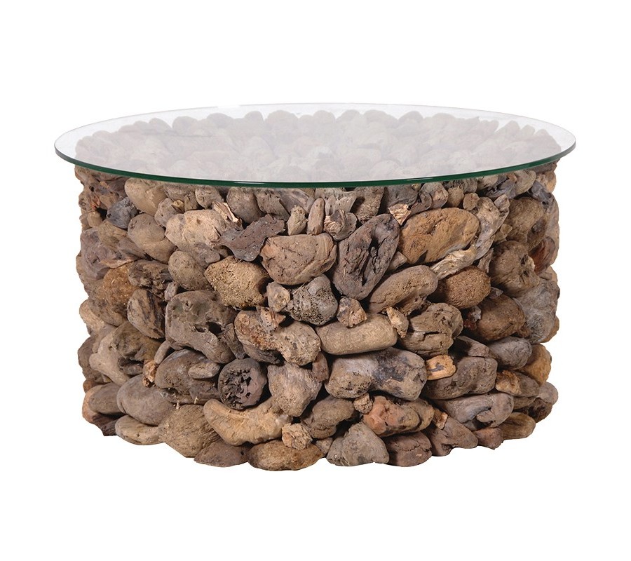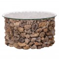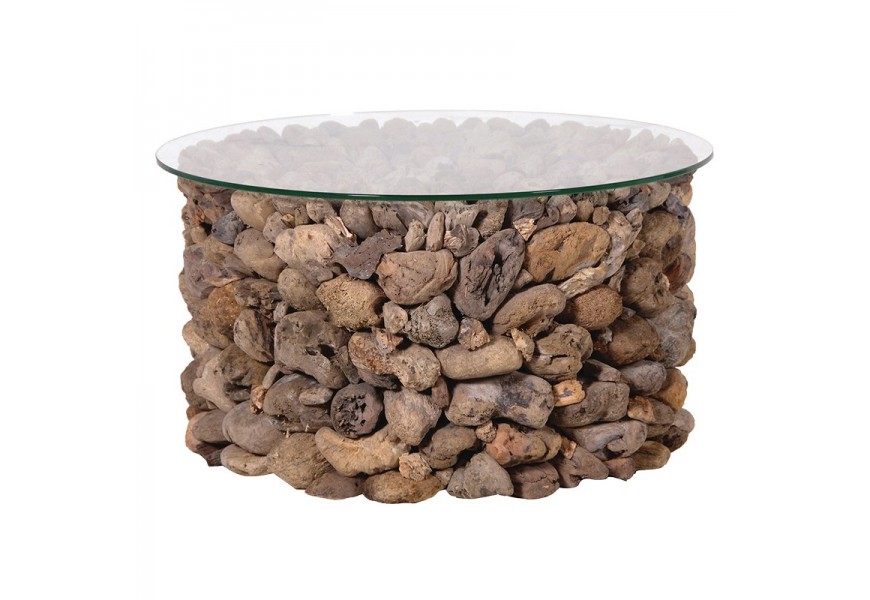 Dizajnový okrúhly konferenčný stolík Driftwood so sklom