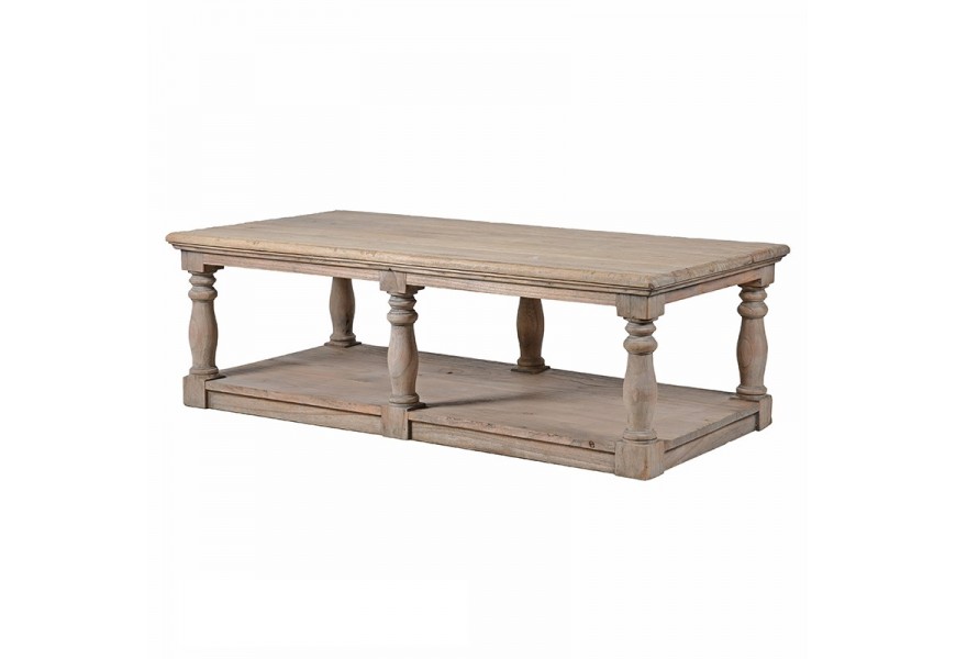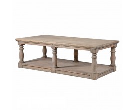 Štýlový vidiecky konferenčný stolík Kolonial Vás očarí svojím kvalitným vyhotovením a vyšperkovaným dizajnom s dôrazom na detaily. Konferenčný stolík Kolonial je vyrobený zo staro hnedého až sivého masívneho recyklovaného borovicového dreva, ktoré Vám zaručí trvanlivosť a odolnosť voči vlhkosti, či poškodeniu. Vďaka povrchovej úprave dreva sú spomenuté vlastnosti umocnené, zároveň je vytvorený ošúchaný historický vzhľad, vďaka čomu naberá masívny konferenčný stolík Kolonial svoj vintage vidiecky vzhľad. Najvýraznejším dizajnovým prvkom obdĺžnikového konferenčného stolíka Kolonial sú jeho nožičky, ktoré sú zdobené antickými prvkami, čo vytvorí jemný nádych rustikálneho štýlu. Masívny prírodný vzhľad konferenčného stolíka Kolonial vytvára ľahkú a všestrannú kombinovateľnosť, napríklad vo vintage, či vidieckych interiéroch s historickými dekoráciami a prírodným masívnym nábytkom, alebo s ďalším nábytkom z kolekcie Kolonial.