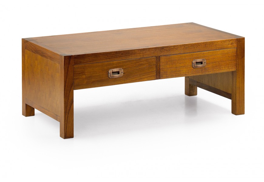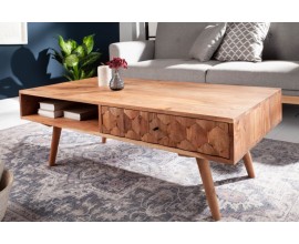 Elegantný masívny konferenčný stolík Star z dreva mindi s dvomi zásuvkami 100cm
