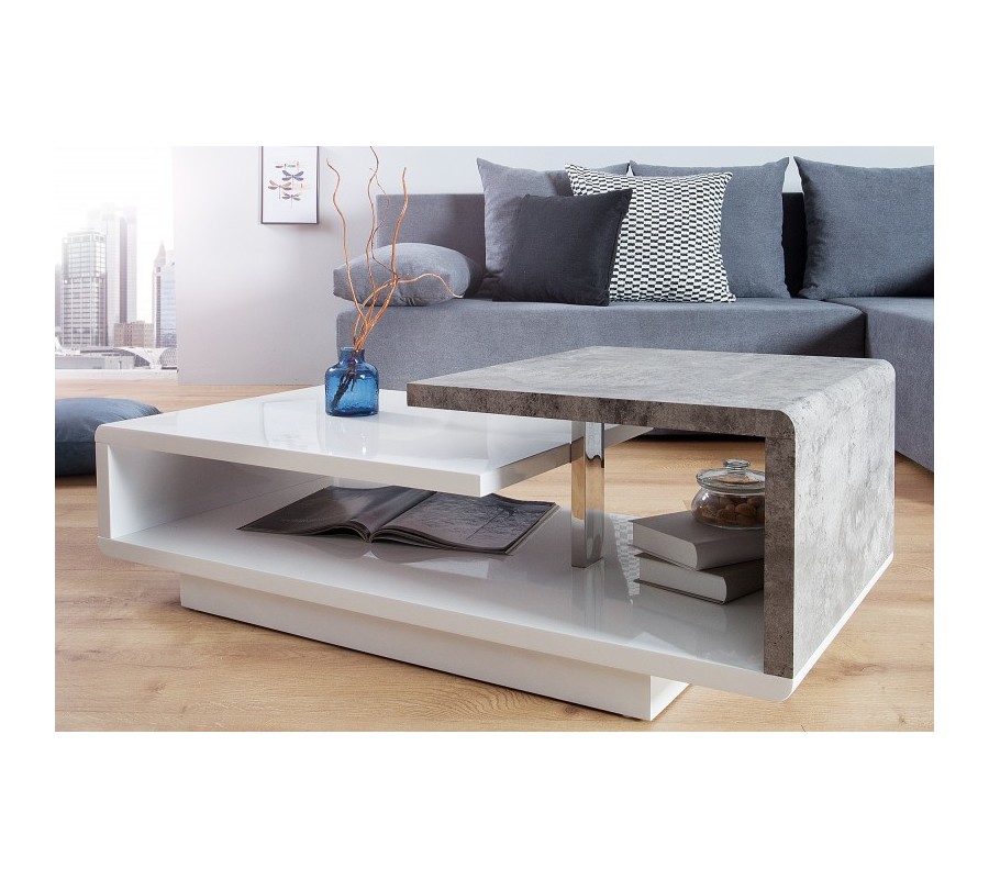 Dizajnový konferenčný stolík Concept 100cm biela/betón