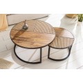 Industriálny set dvoch okrúhlych konferenčných stolíkov Elements z masívneho mangového dreva a ratanu 36cm