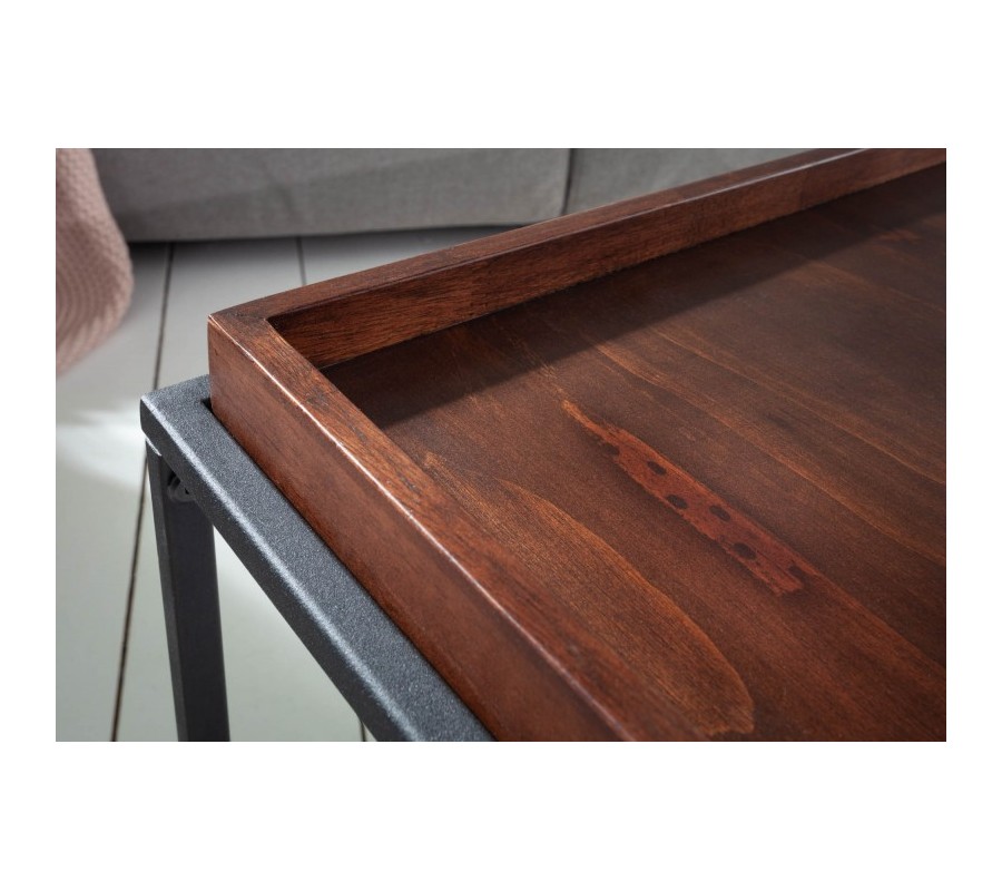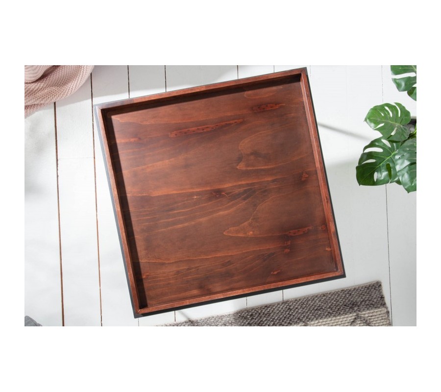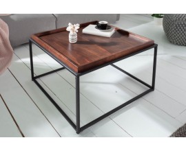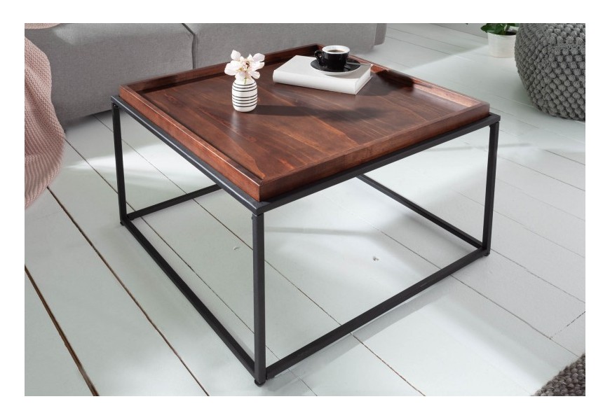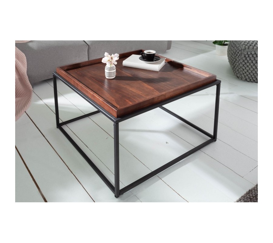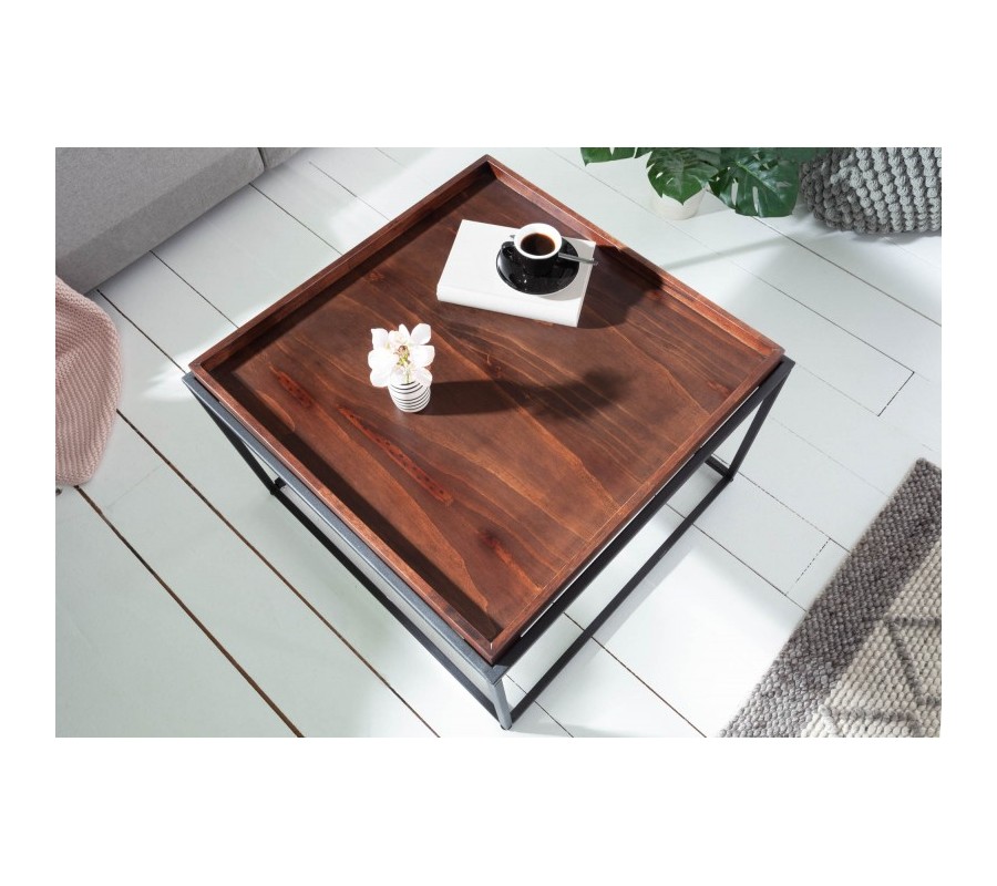Industriálny vkusný štvorcový konferenčný stolík Elements s odnímacou tmavohnedou povrchovou doskou