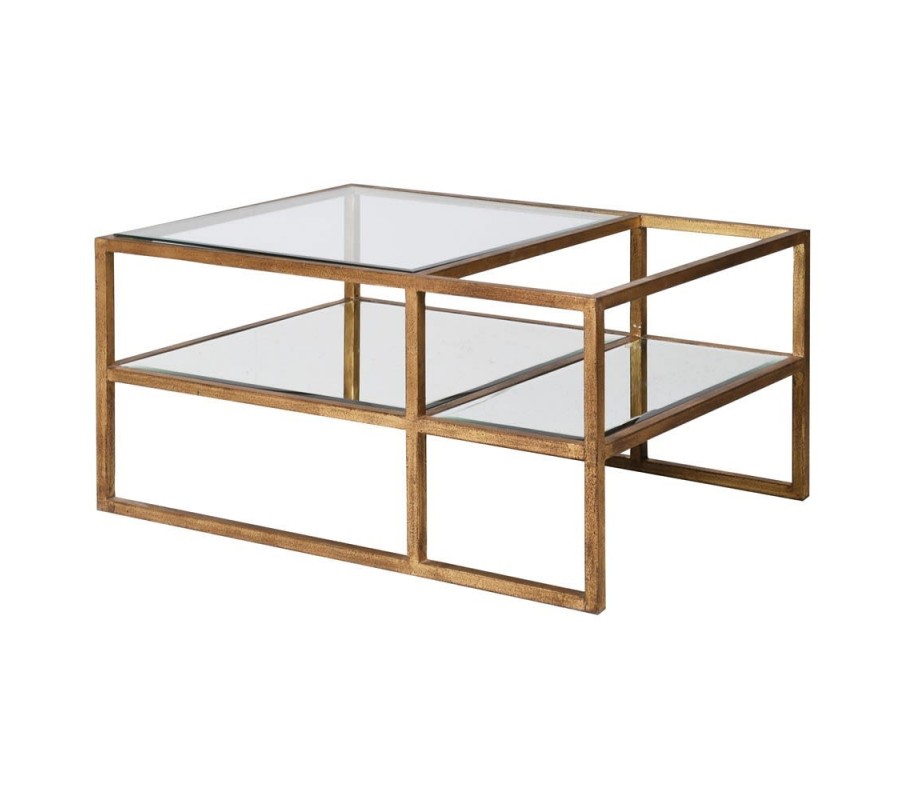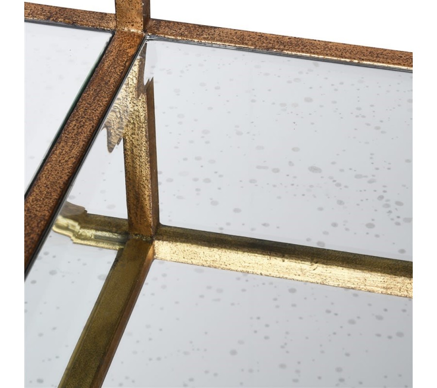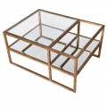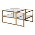 Jedinečný konferenčný stolík Lacani je tvorený vkusnou kovovou kostrou so zlatým náterom, ktorá je doplnená o presklenú povrchovú dosku a policu zo zrkadiel, kombinácia zrkadla a skla dodáva priestoru, do ktorého stolík Lacani umiestnite, dojem priestrannosti a otvorenosti. Vkusný a minimalistický obdĺžnikový konferenčný stôl dokonale zapadne najmä do miestností ladených v štýle art-deco či do domácností s typicky moderným nádychom, dekorácie, ktoré podtrhnú originalitu a jas stolíka Lacani odporúčame ladiť vo výrazných a tmavých odtieňoch.