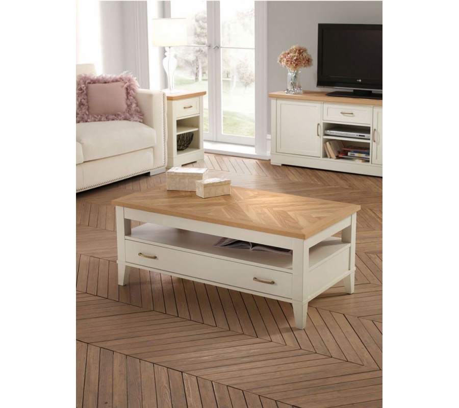 Luxusný konferenčný stolík z rady provensálskeho nábytku Tira je vyrobený z kvalitného dreva, pričom povrchová doska je ponechaná v jeho prirodzených farebných tónoch. Konferenčný stolík Tira I disponuje možnosťou nastaviteľnej výšky, čo jednoznačne oceníte. Rovnako užitočným je i úložný a odkladací priestor, ktorý Vám poskytuje. Tento jedinečný kúsok veľmi jednoducho zapadne do štýlovo odlišných interiérov akéhokoľvek moderného domova vďaka možnosti farebnej variability.