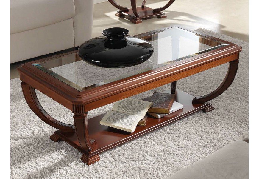 Luxusný rustikálny obdĺžnikový konferenčný stolík RUSTICA presklený