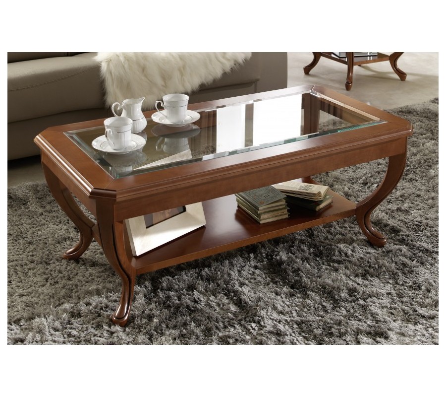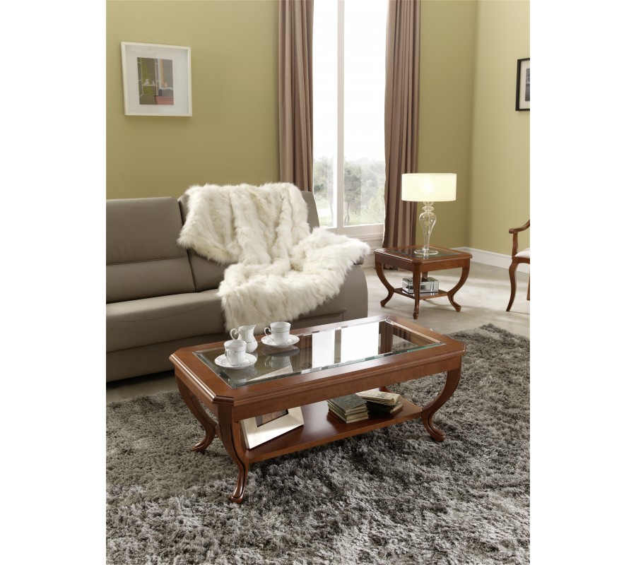 Luxusný rustikálny konferenčný stolík presklený CASTILLA IV obdĺžnikový