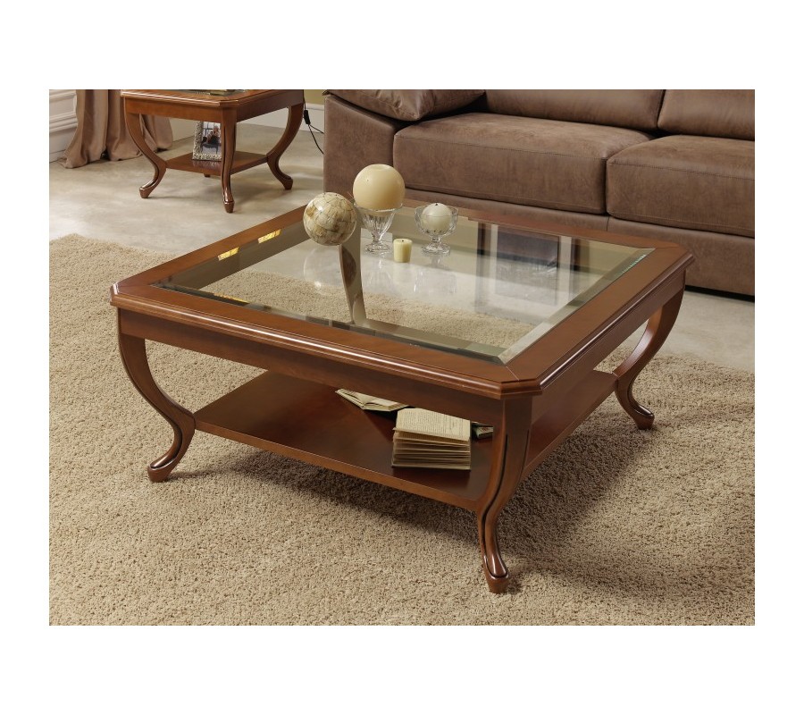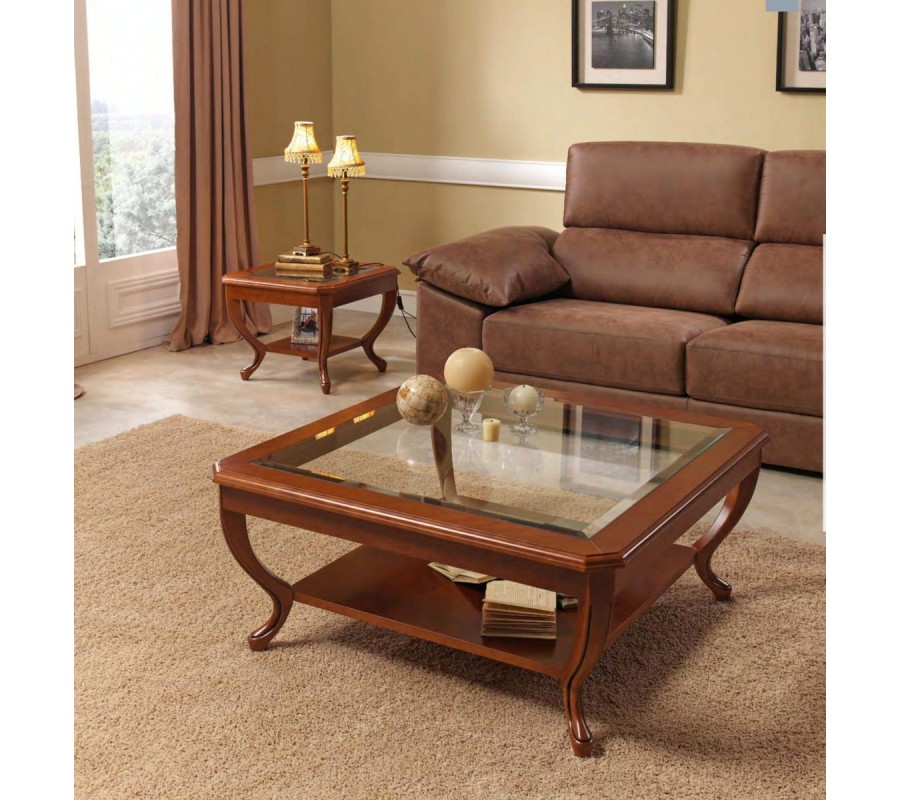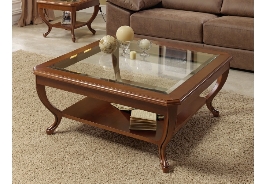 Luxusný rustikálny presklený konferenčný stolík CASTILLA III štvorcový