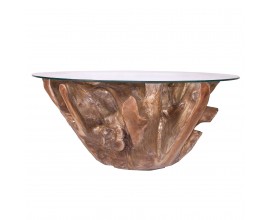 Luxusný oválny rustikálny konferenčný stolík Rustica presklený 112cm