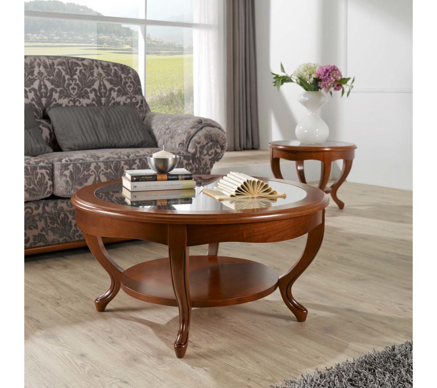 Luxusný rustikálny okrúhly konferenčný stolík RUSTICA 90cm presklený