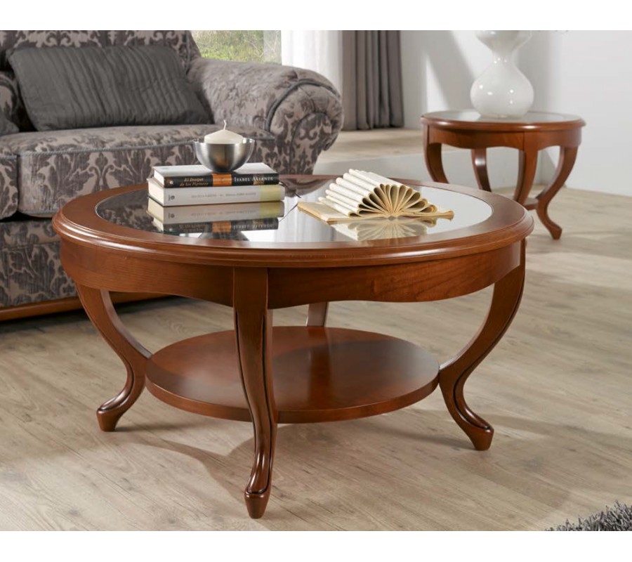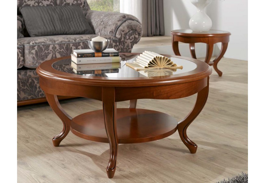 Luxusný rustikálny okrúhly konferenčný stolík RUSTICA 90cm presklený