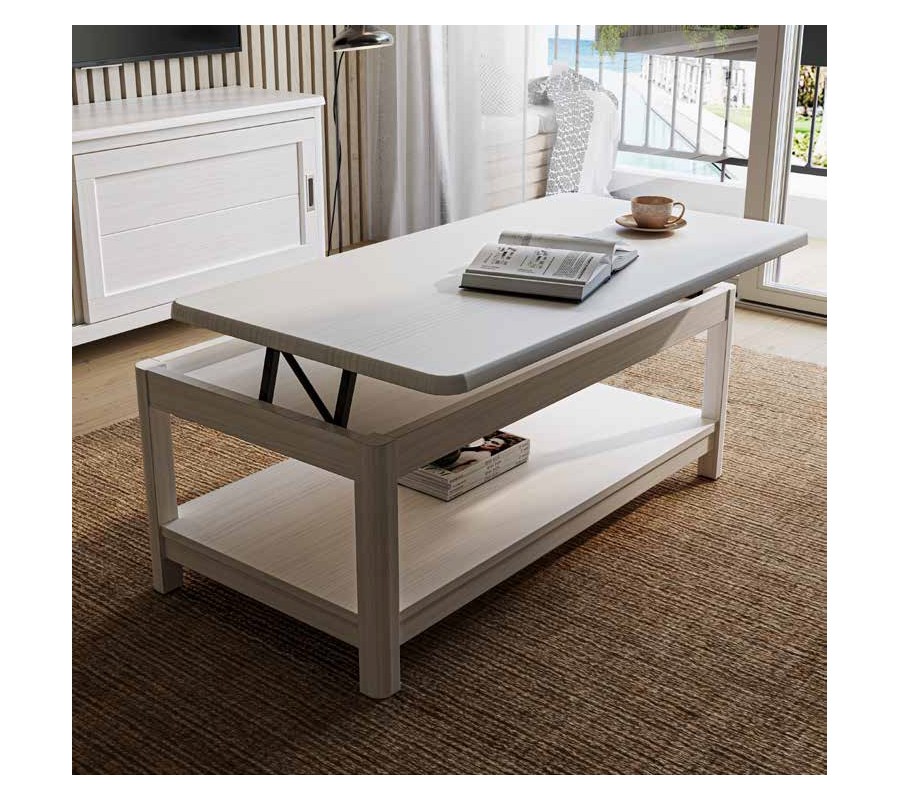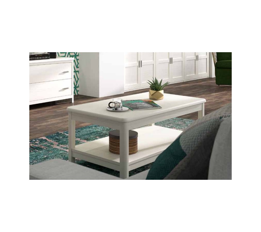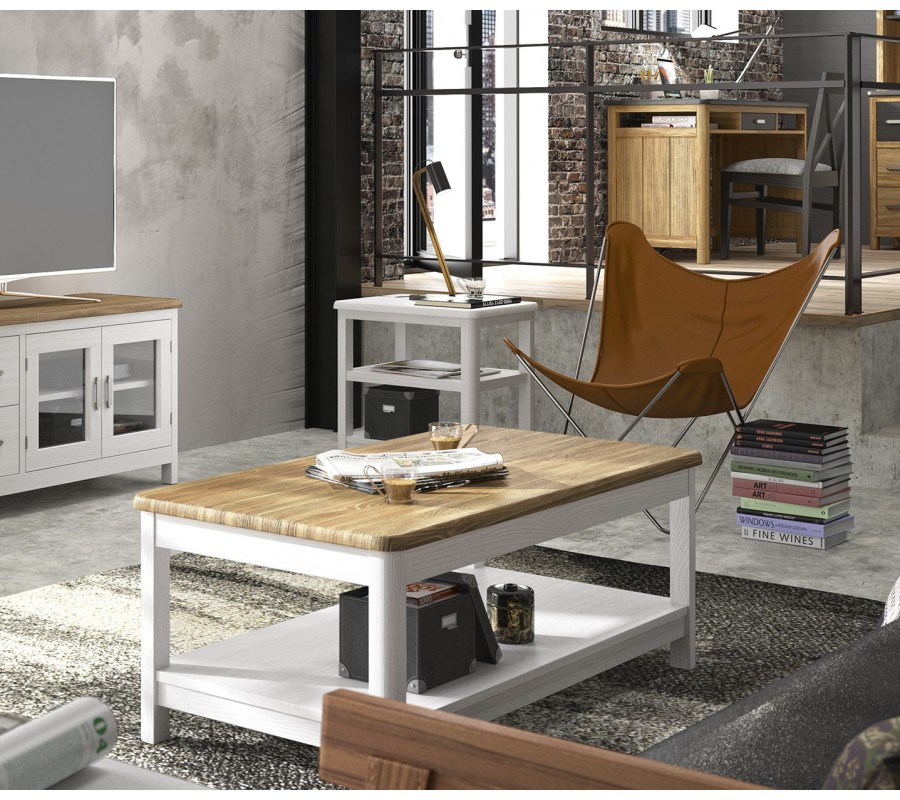 Luxusný moderný masívny obdĺžnikový konferenčný stolík Cerdena s policou a vyklápacou doskou s úložným priestorom 115 cm