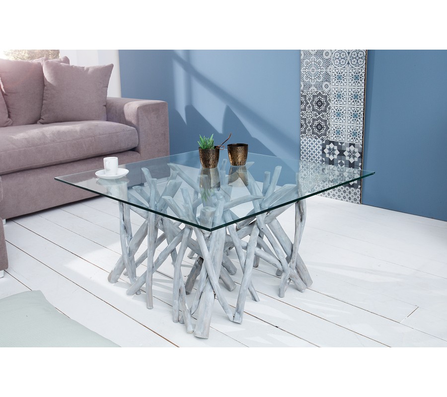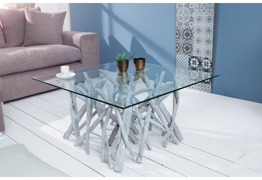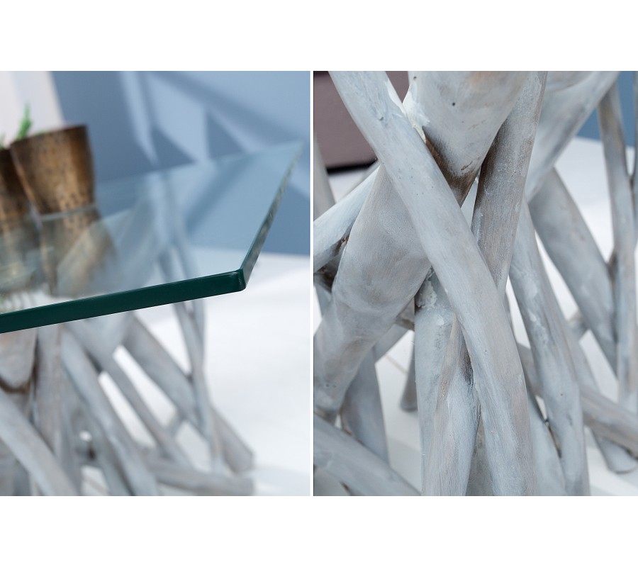Dizajnový originálny konferenčný stolík Driftwood vyrobený z masívu teakového dreva je krásnym doplnkom do obývacích izieb všetkých štýlov. Prírodné spracovanie umožňuje vybaviť stolíkom domácnosť nehľadiac na štýl zariadenia. Doska stolíka je vyrobená z tvrdeného skla, vďaka ktorému sa nemusíte obávať o jej rozbitie.