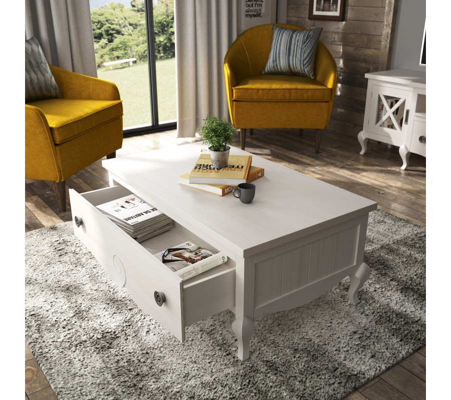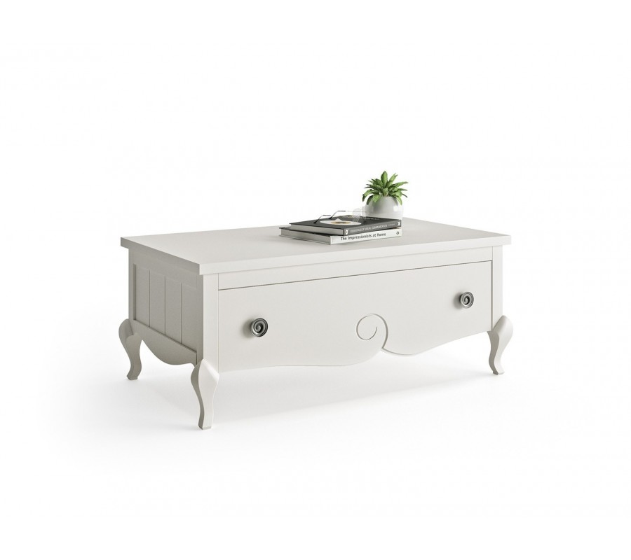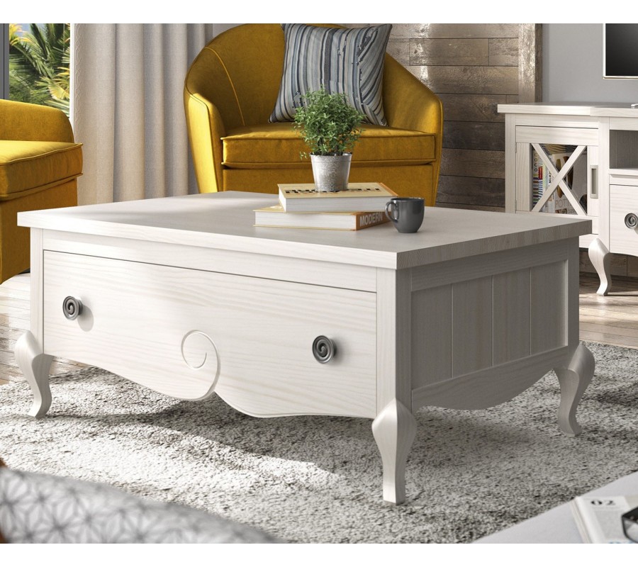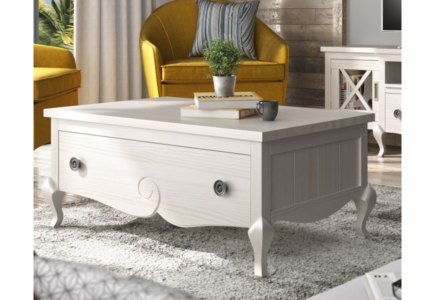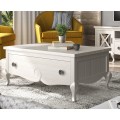 Exkluzívny konferenčný stolík z našej kolekcie Volga je štýlovým prepojením modernej elegancie a prvkov klasického štýlu. Vyznačuje sa predovšetkým svojím špecifickým štvorcovým tvarom a konštrukciou z masívneho dreva, ktorá je zárukou kvality a taktiež udržateľnosti. Nožičky a hrany stolíka zdobí precízne ručné vyrezávanie, ktoré tomuto kúsku dodáva nezameniteľný rustikálny nádych. Okrem praktickej zásuvky ponúka tento stolík tiež možnosť vysunutia povrchovej dosky, vďaka čomu je tiež ideálny na prácu s počítačom. Na výber ponúkame viacero možných farebných prevedení, vďaka čomu si môžete stolík Volga prispôsobiť svojím predstavám a potrebám vašej obývačky. Odporúčame tento kúsok umiestniť do klasicky ladených priestorov v kombinácii s ďalším masívnym nábytkom a doplnkami vo vidieckom alebo rustikálnom štýle.