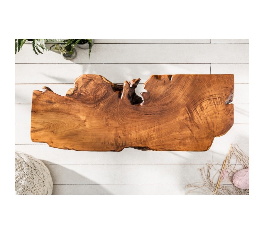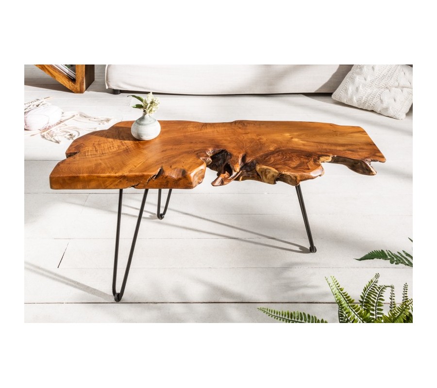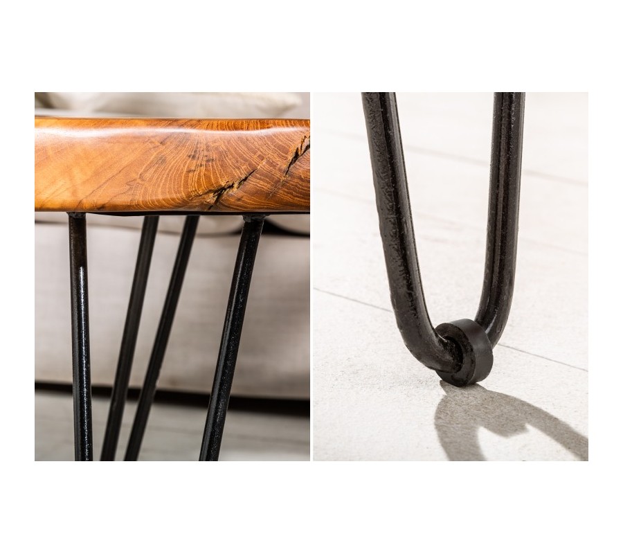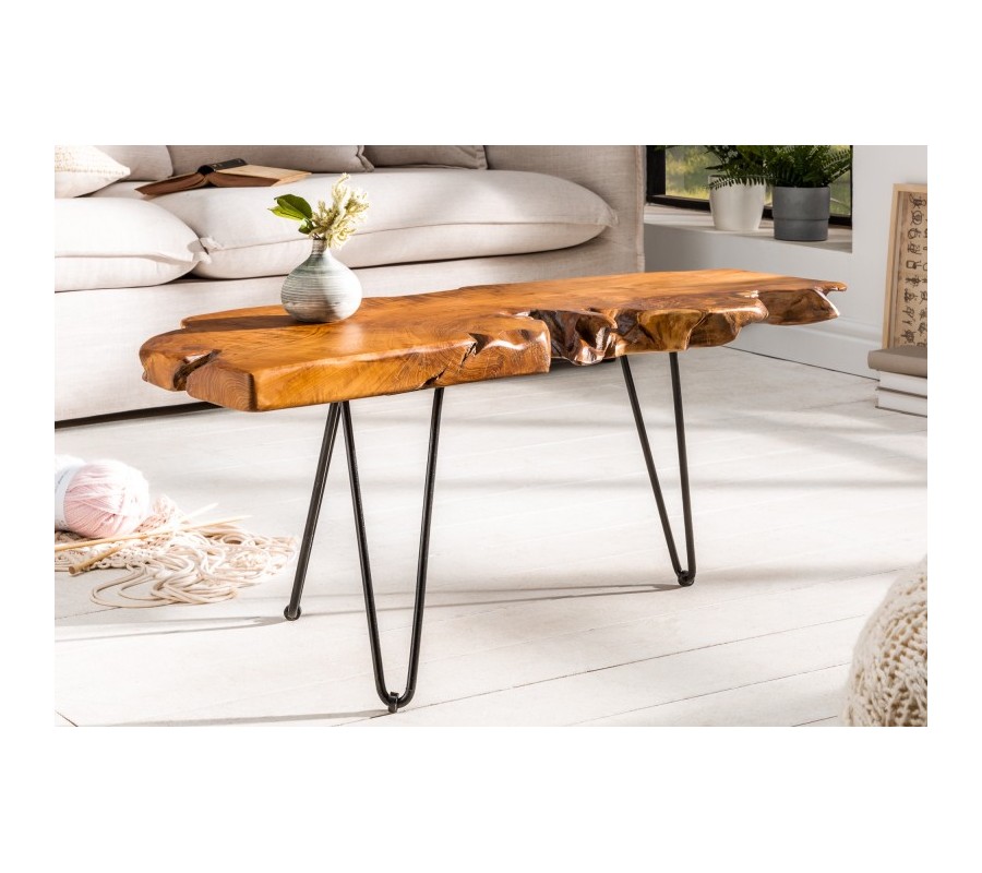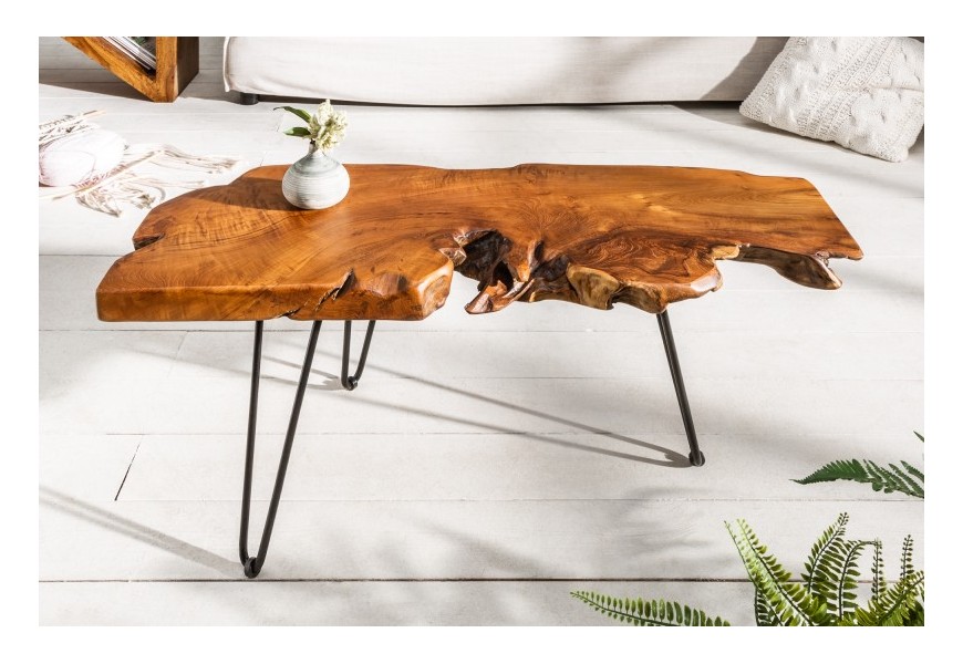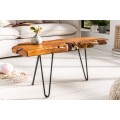 Atypický konferenčný stolík Basildon je príkladným predstaviteľom nábytku vyrobeného z masívnych samorastov, ktorý zároveň štýlovo inklinuje k industriálnemu dizajnu a dokáže príjemne ozvláštniť Váš domov. Masívna povrchová doska je vyrobená z kvalitného agátového dreva a kombinácia jej naturálnych farieb a chladných kovových nôh pôsobí veľmi vkusne.