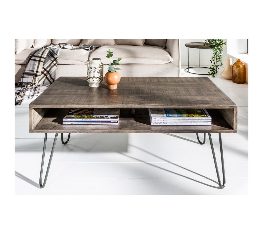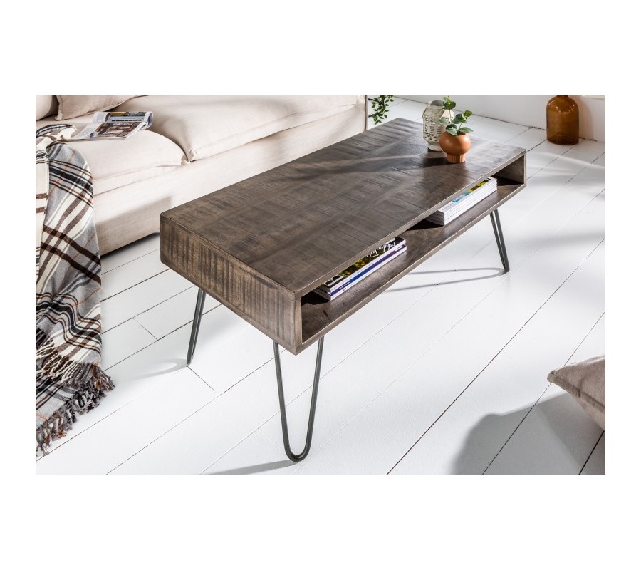 Industriálny konferenčný stolík Leeds z mangového dreva šedý